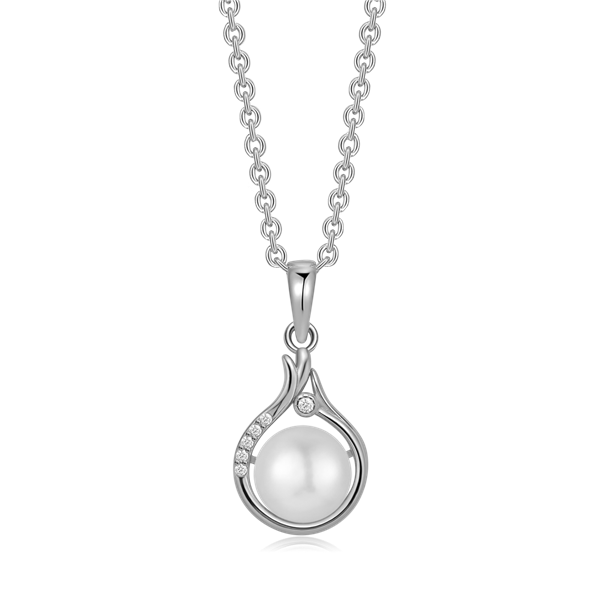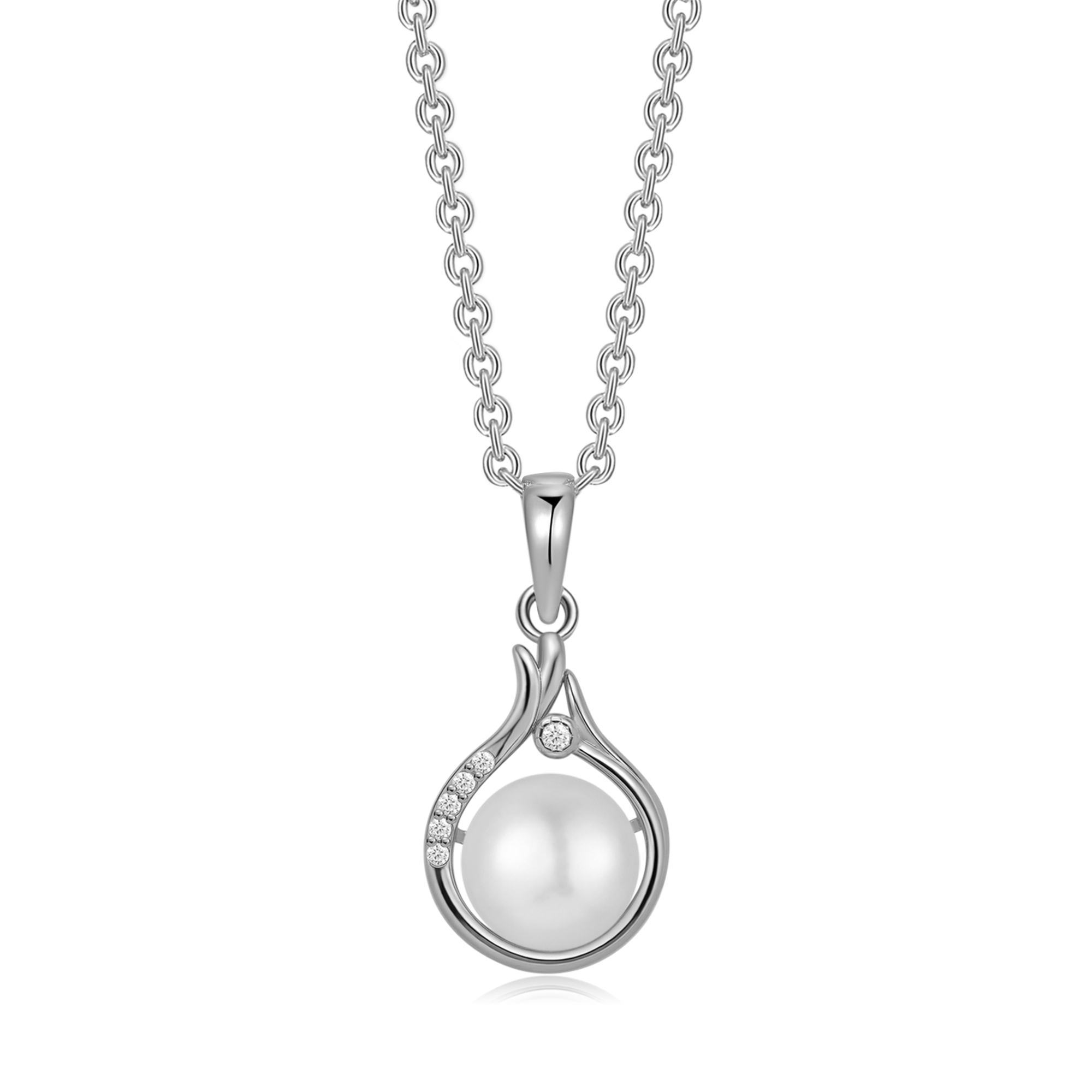 Sølv halskæde rhodineret dråbe med syntetiske cubic zirconia og ferskvandsperle.