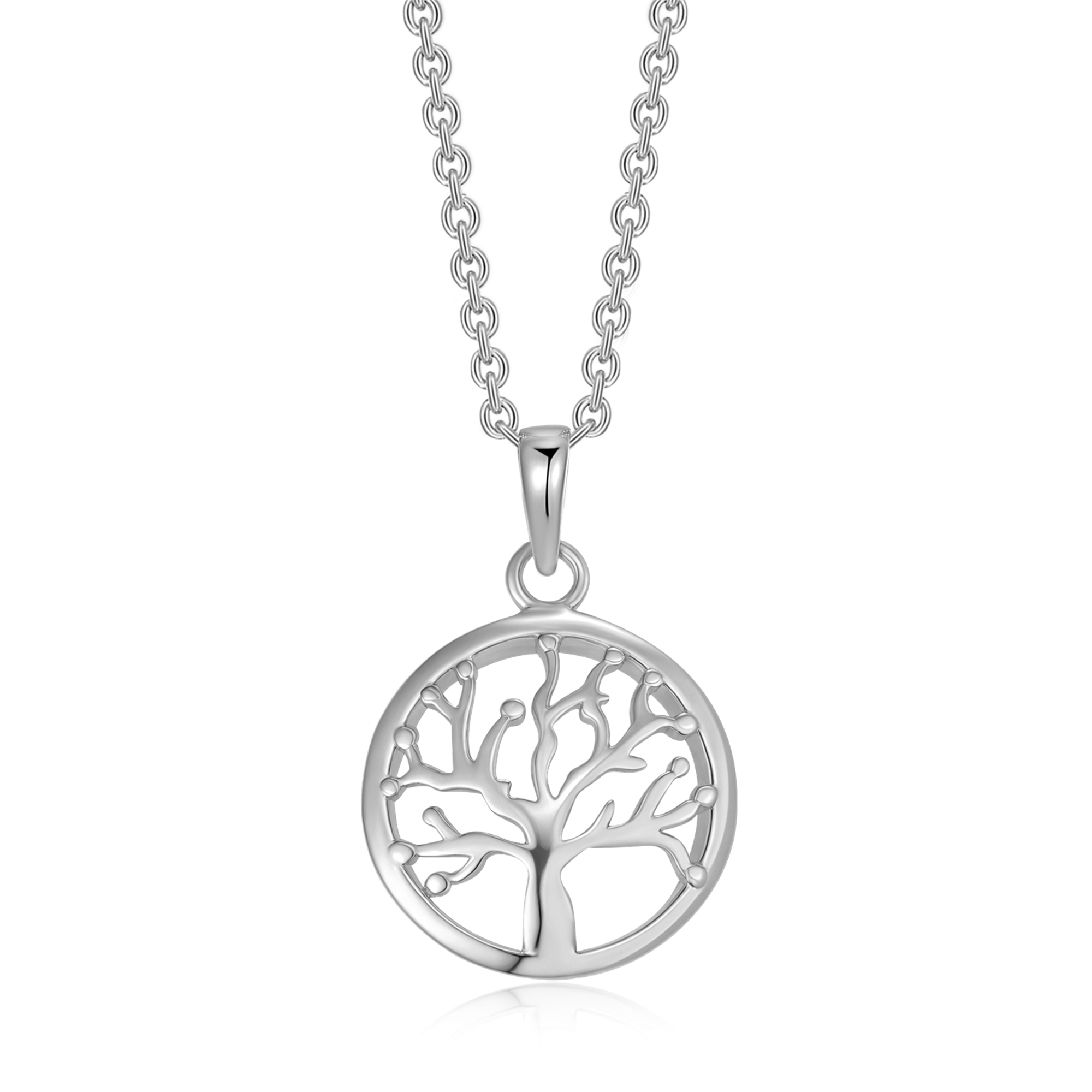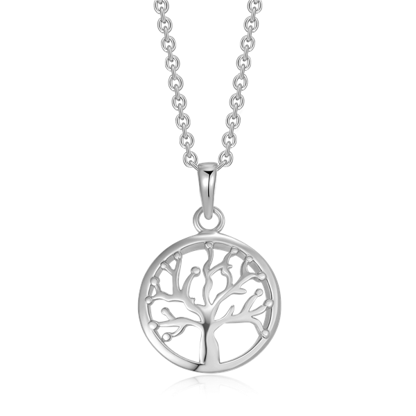 Sølv halskæde rhodineret livets træ i cirkel med syntetiske cubic zirconia.