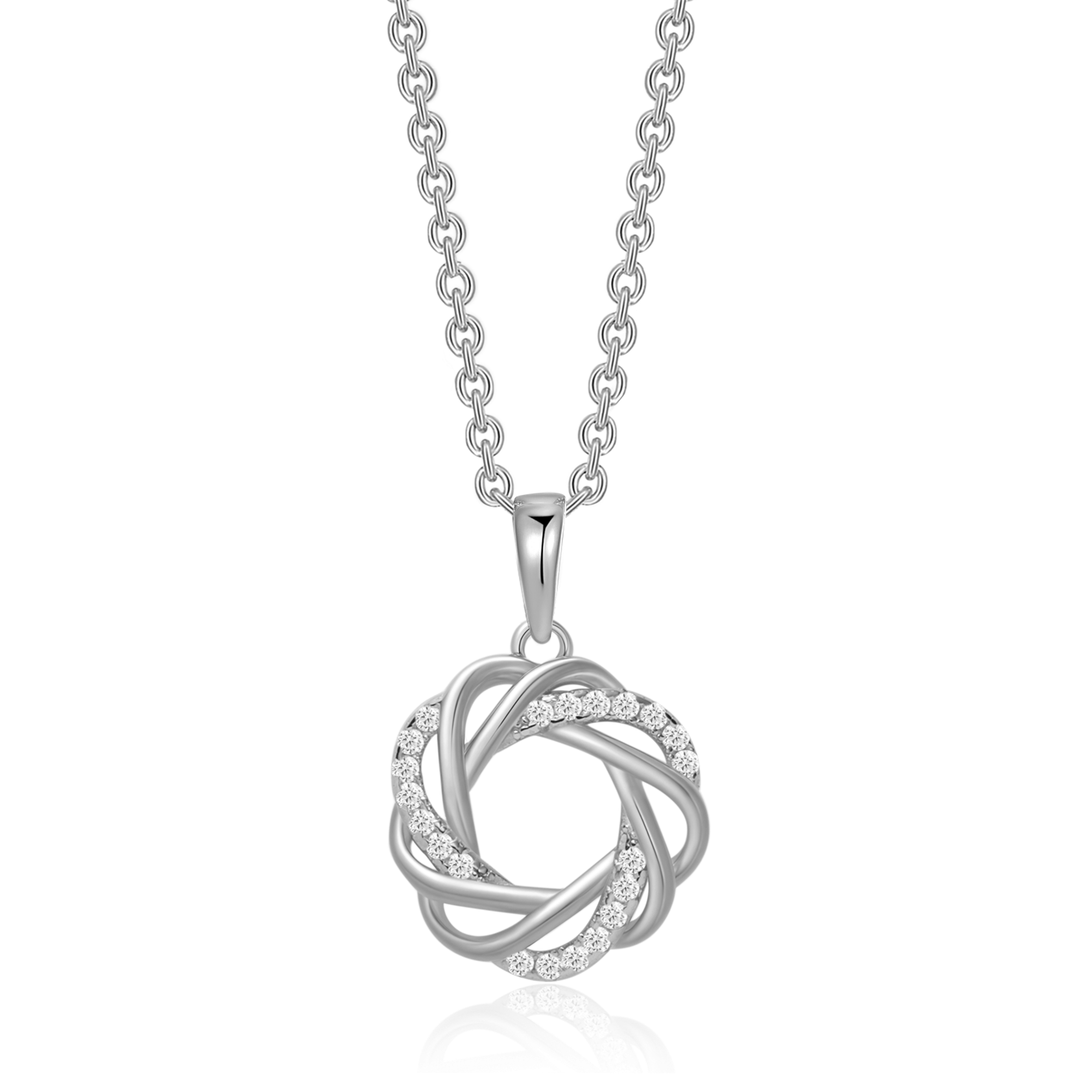 Sølv halskæde rhodineret fletet cirkel med syntetiske cubic zirconia.