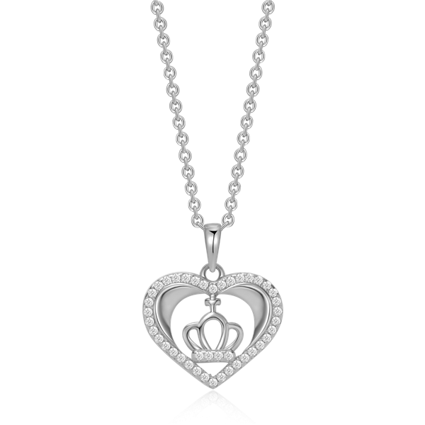 Sølv halskæde rhodineret hjerte med krone og syntetiske cubic zirconia.