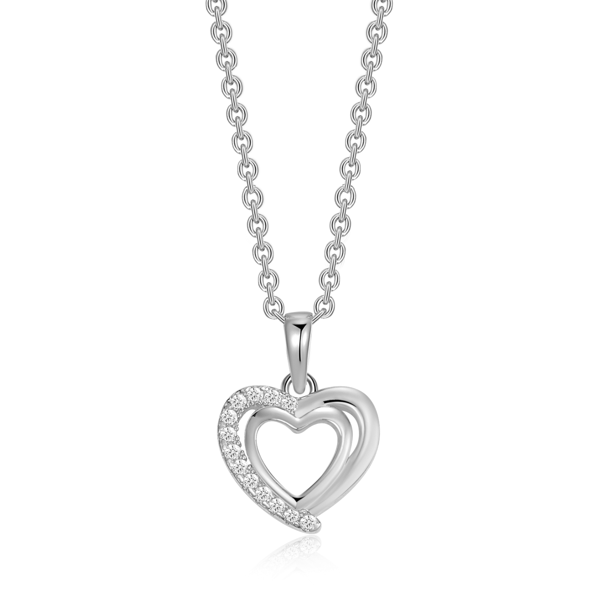 Sølv halskæde rhodineret dobbelt hjerte med syntetiske cubic zirconia.