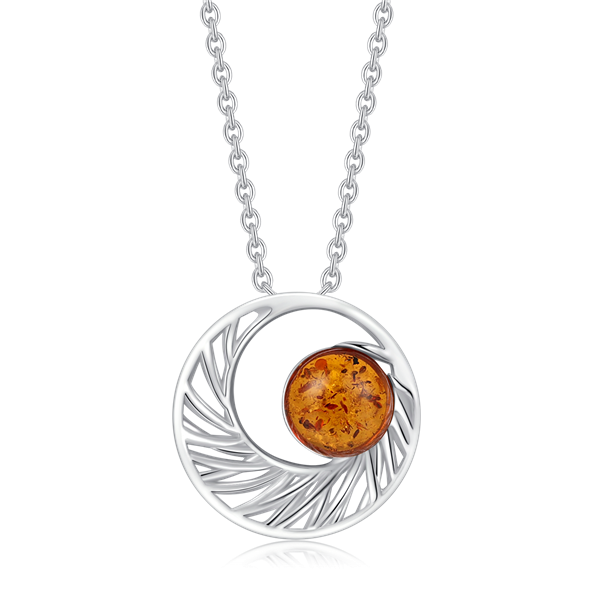 Sølv halskæde rhodineret cirkel med ønster og rav.