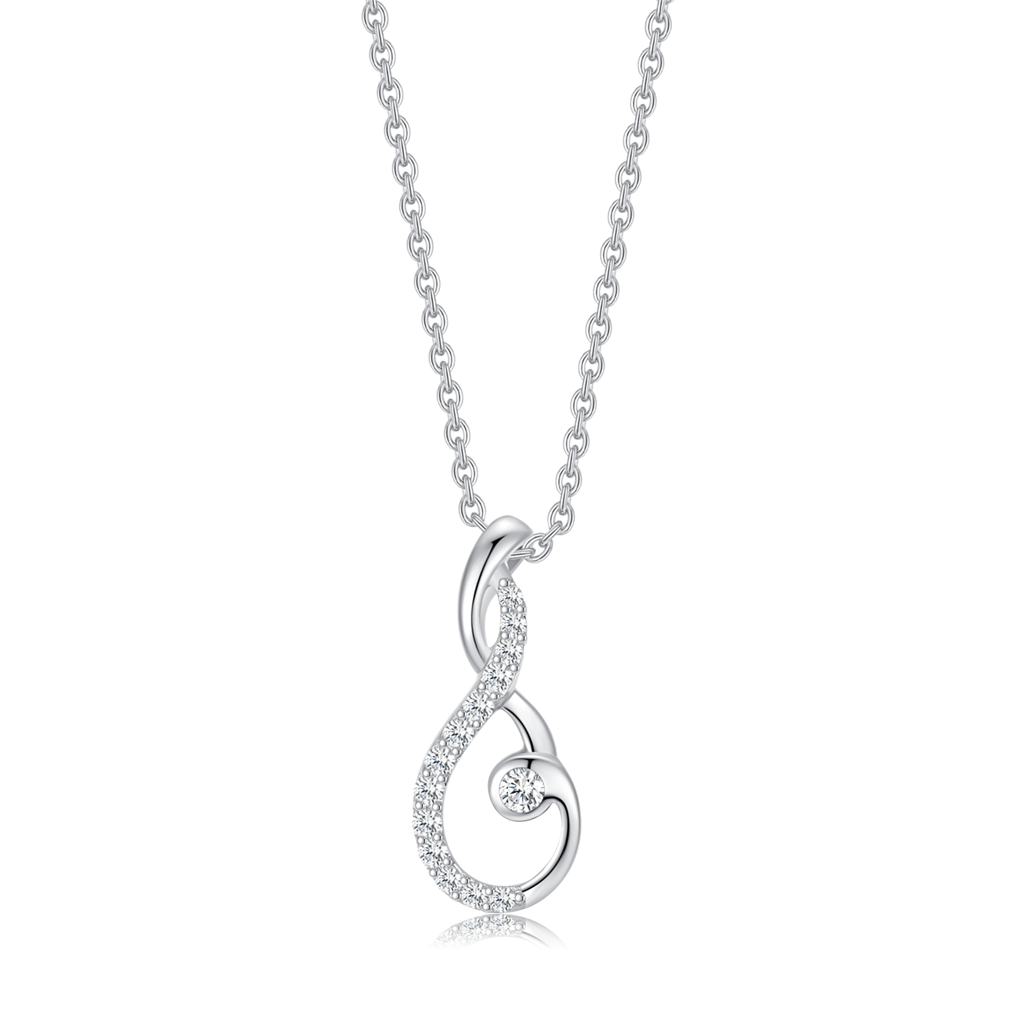 Sølv halskæde rhodineret dråbe med flettet på toppen og en syntetisk cubic zirconia i midten og kanten.