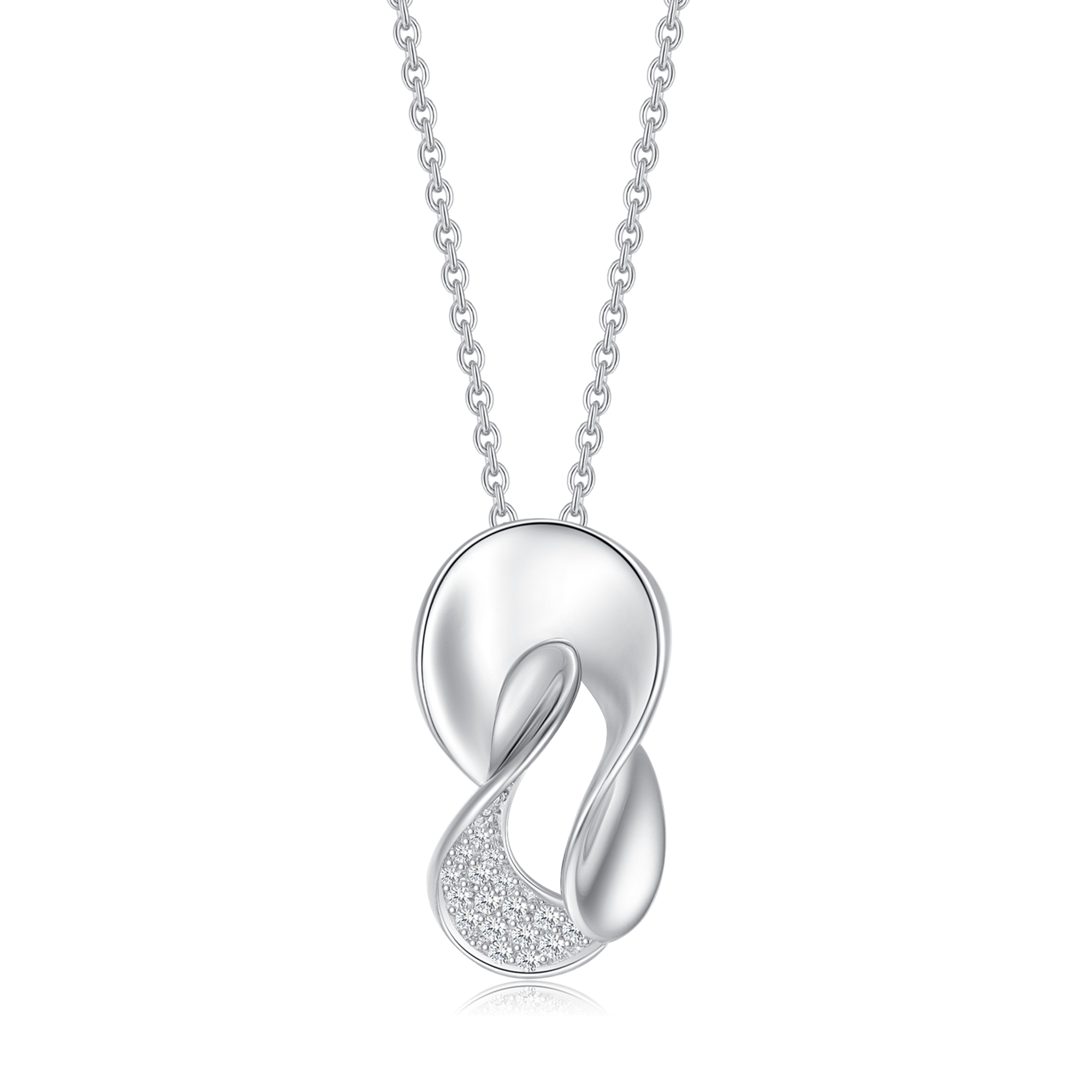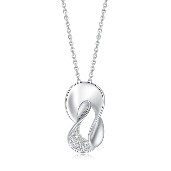 Sølv halskæde rhodineret skæv blad med syntetiske cubic zirconia.