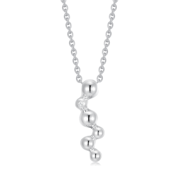 Sølv halskæde rhodineret 6 forskellige kugler med en syntetisk cubic zirconia .