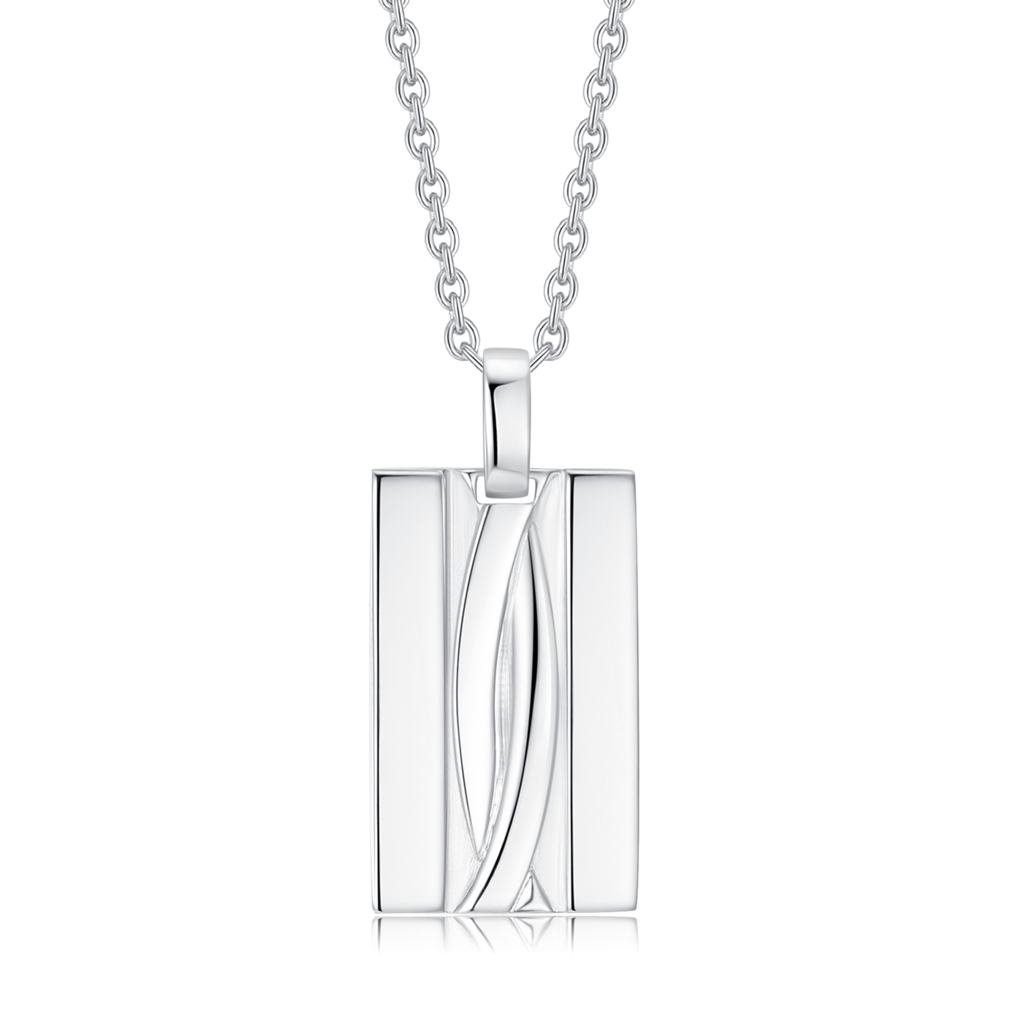 Sølv halskæde rhodineret firkant plade med mønster.