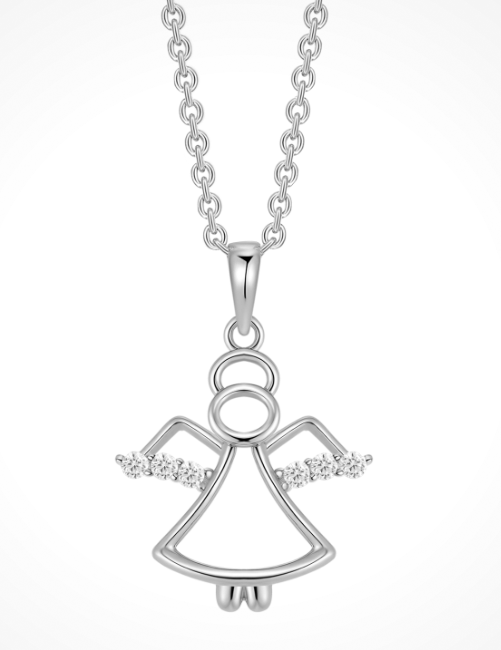 Sølv halskæde rhodineret engle med syntetiske cubic zirconia.