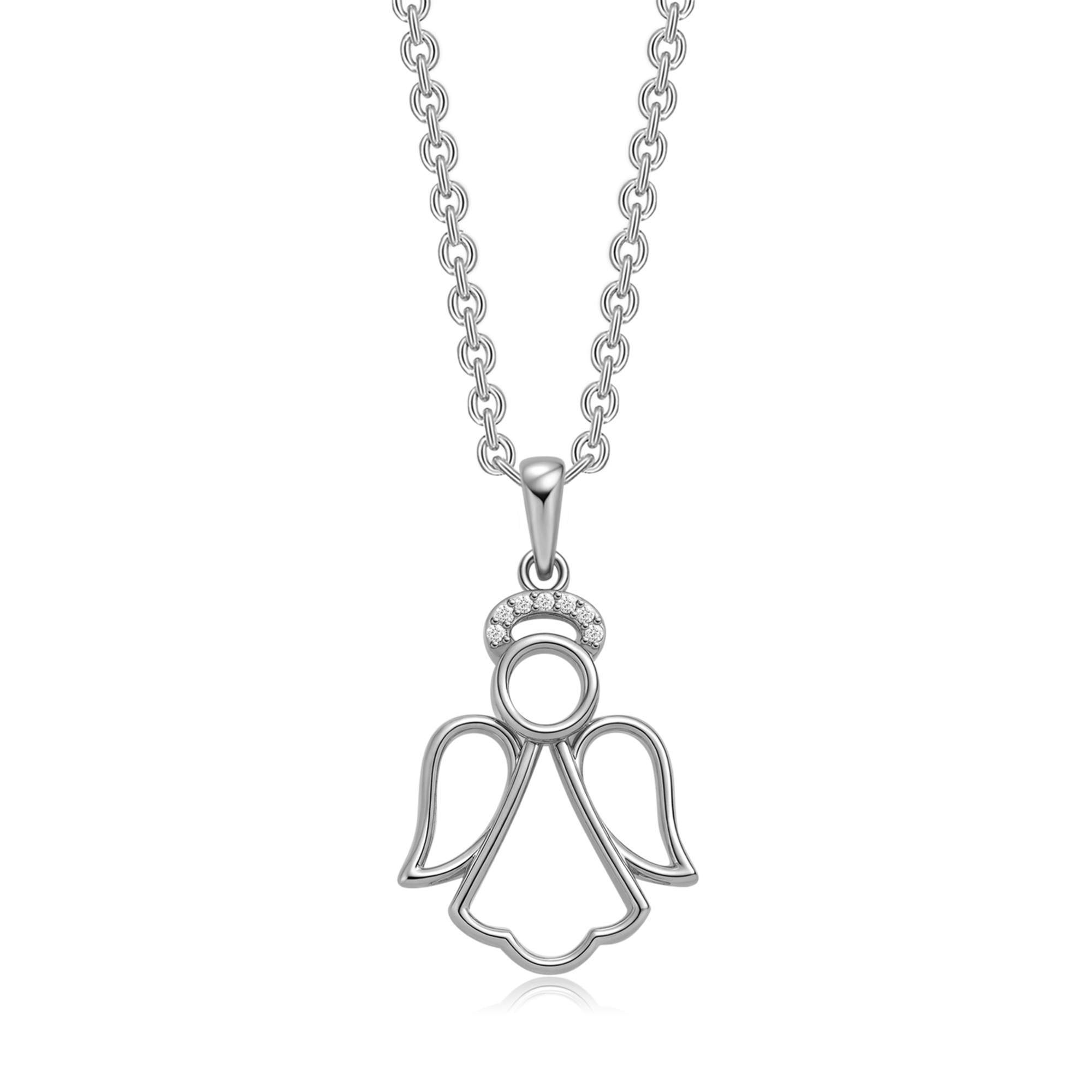 Sølv halskæde med engelvedhæng, vinger og glorie med sten. Traditionel kæde.