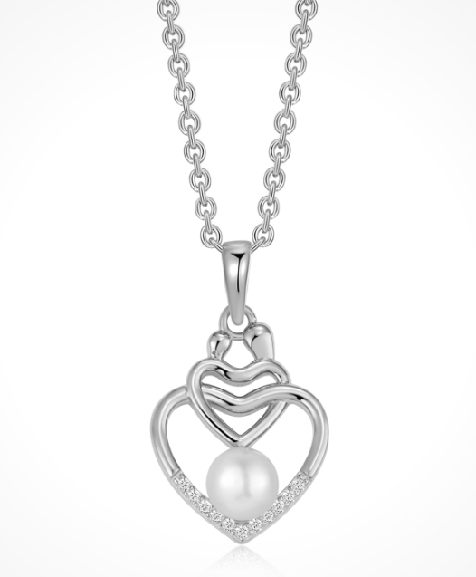 Sølv halskæde rhodineret dobbelt hjerter med syntetiske cubic zirconia og ferskvandsperle.