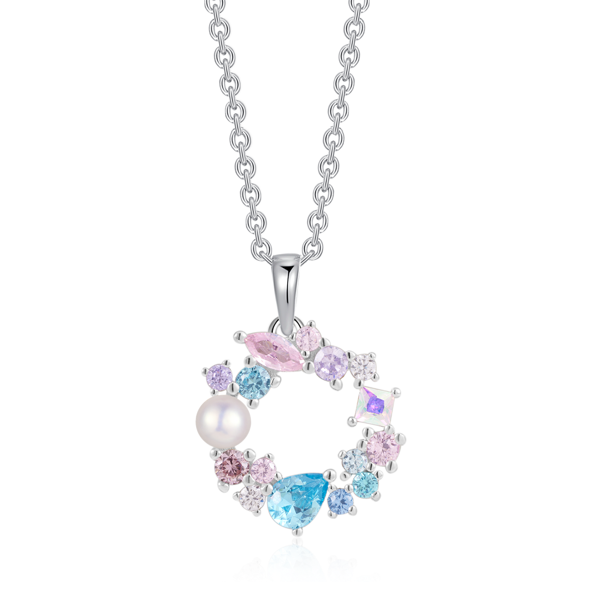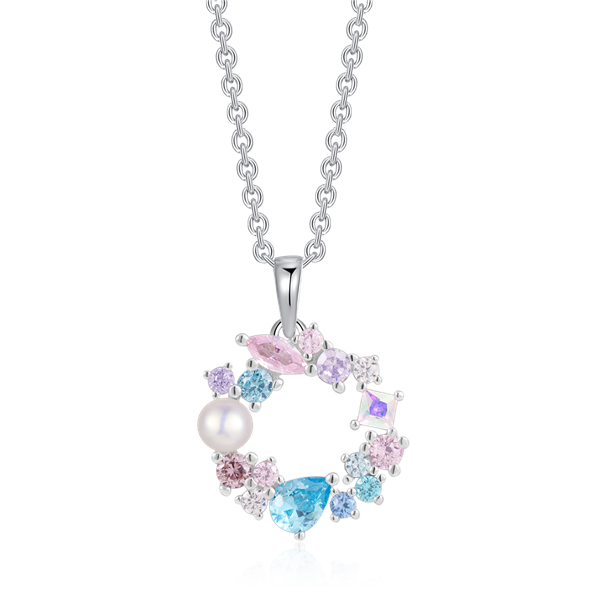 Sølv halskæde rhodineret cirkel med multi syntetiske cubic zirconia farver sten.
