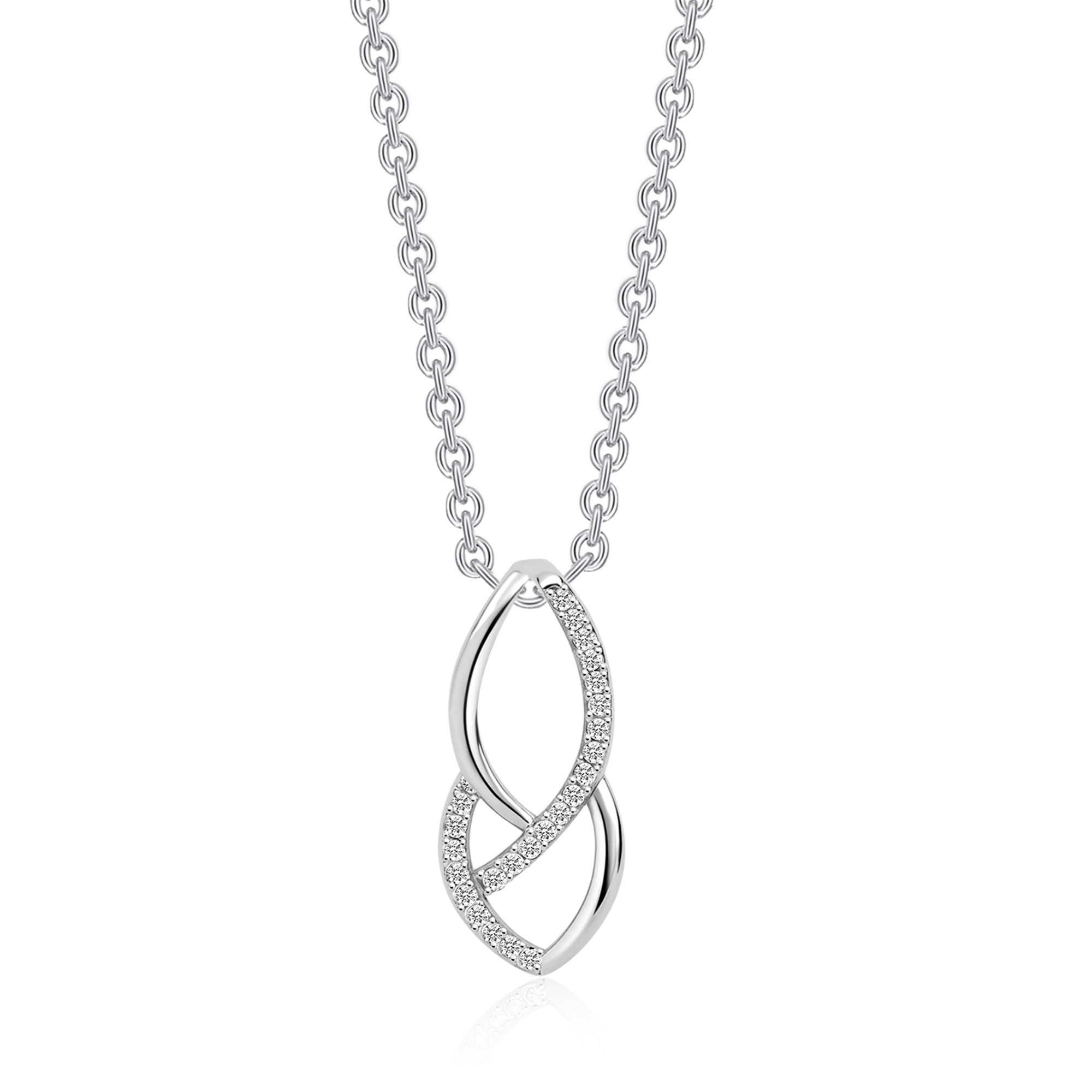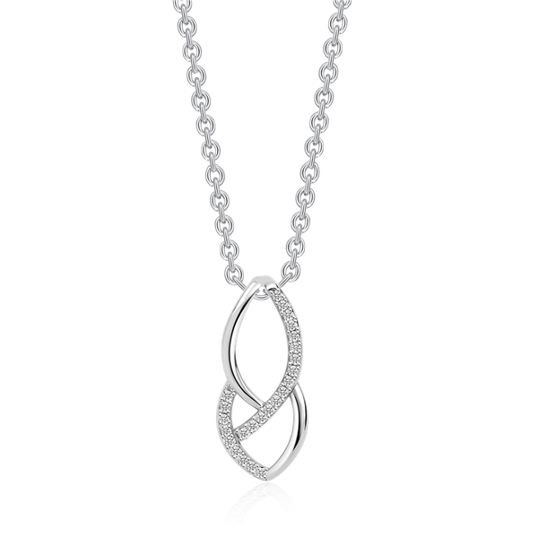 Sølv halskæde rhodineret dobbelt oval med syntetiske cubic zirconia.
