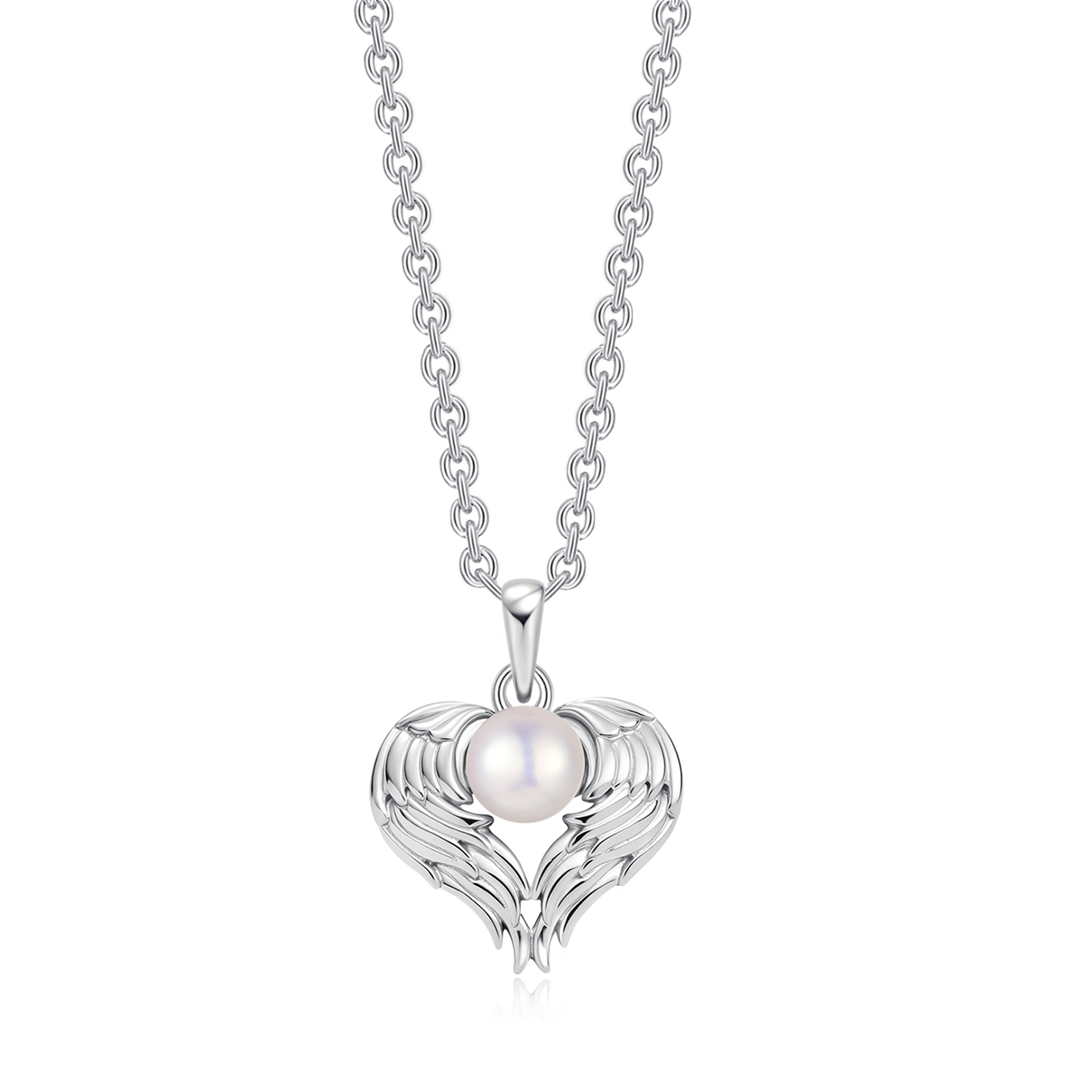 Sølv halskæde rhodineret hjerte med ferskvandsperle.