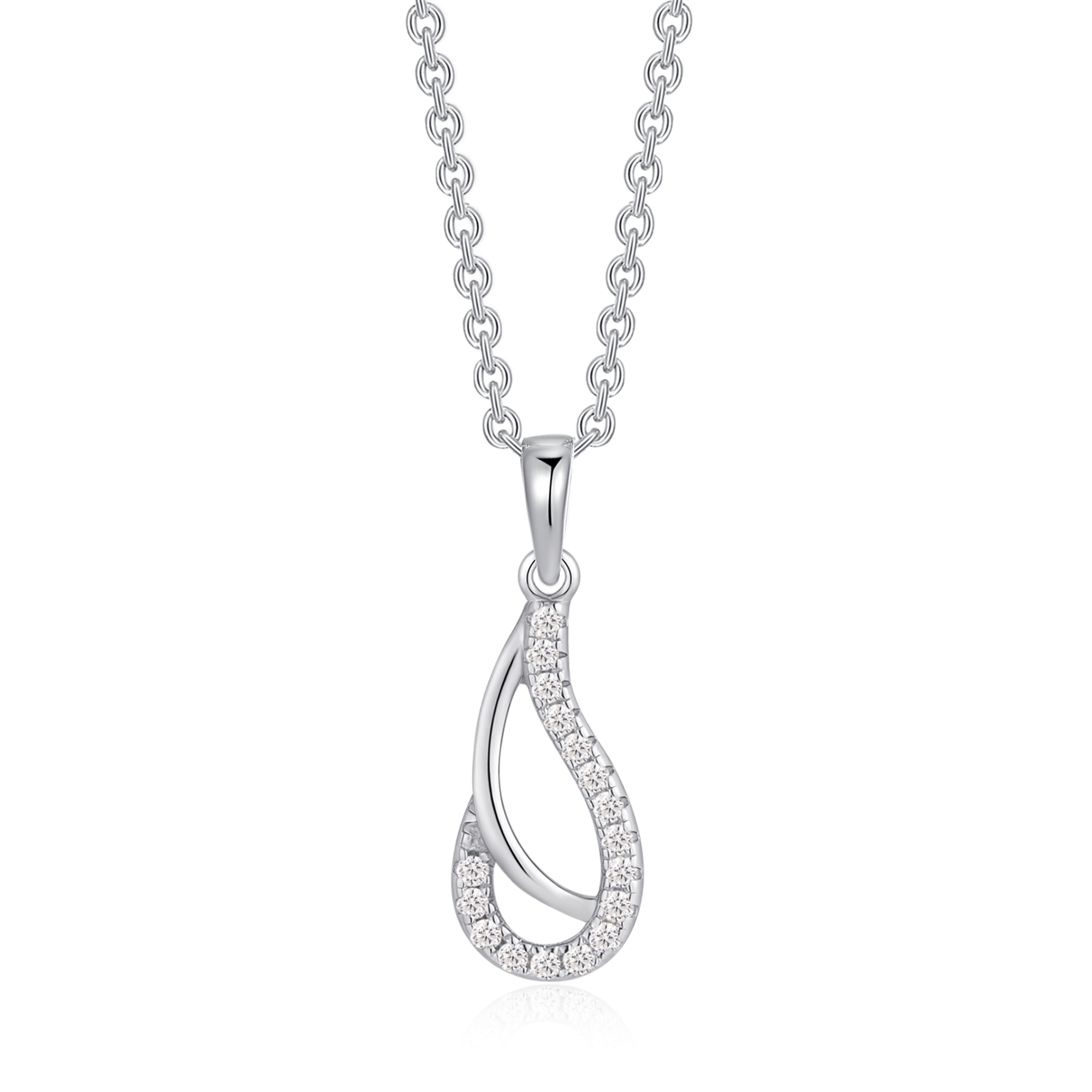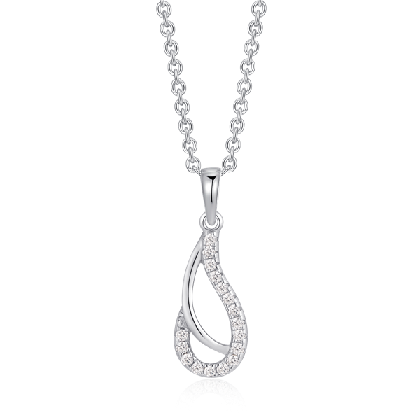 Sølv halskæde rhodineret skæv dråbe med syntetiske cubic zirconia.