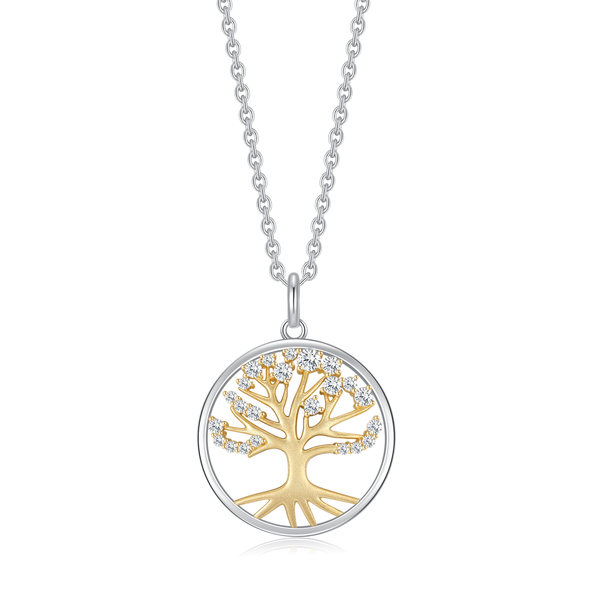 Sølv vedhæng rhodineret livets træ i cirkel med syntetiske cubic zirconia.