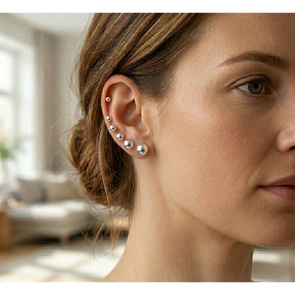 Sølv kugle ørestikker, 6 mm kugle