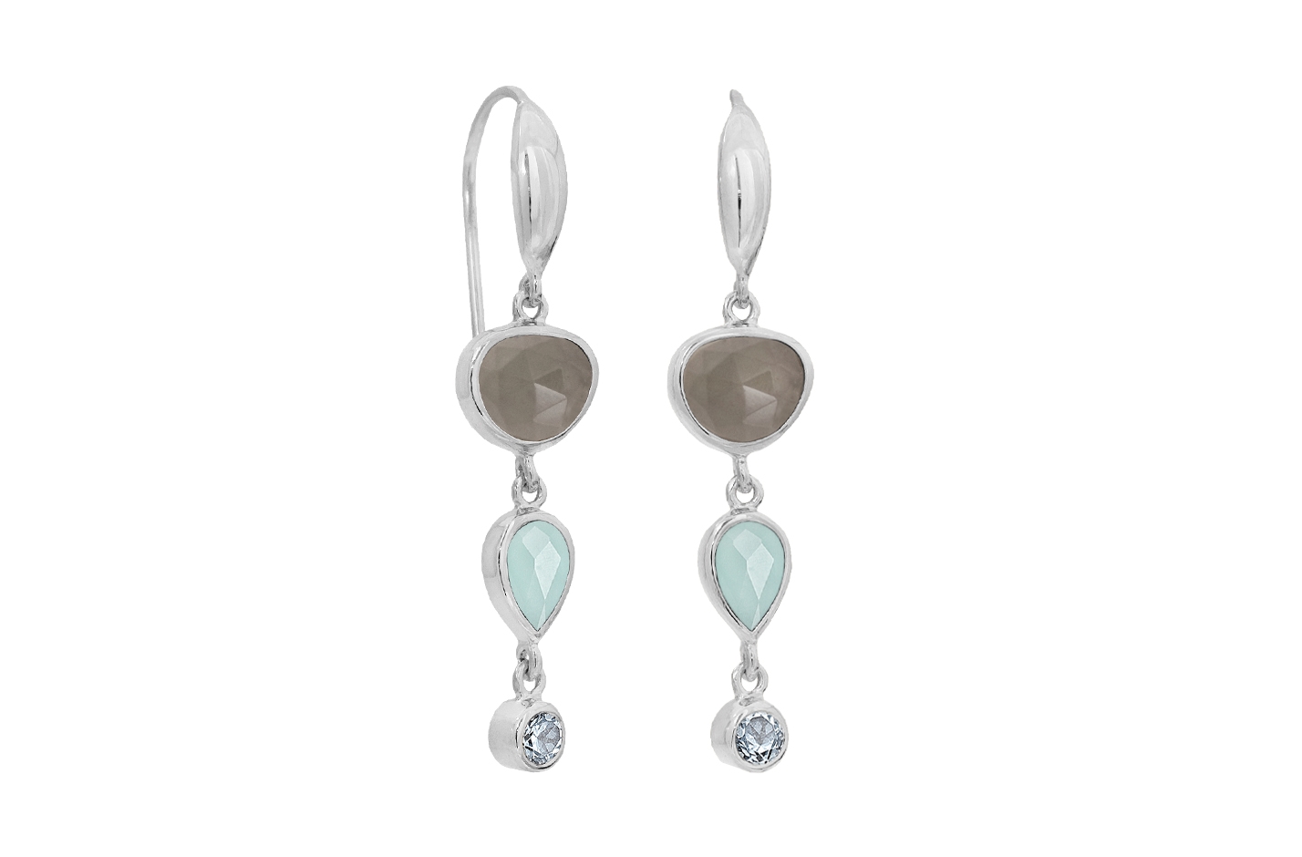 7x6mm grå månesten, 6x4mm calcedon, 2,5mm sky blå topas