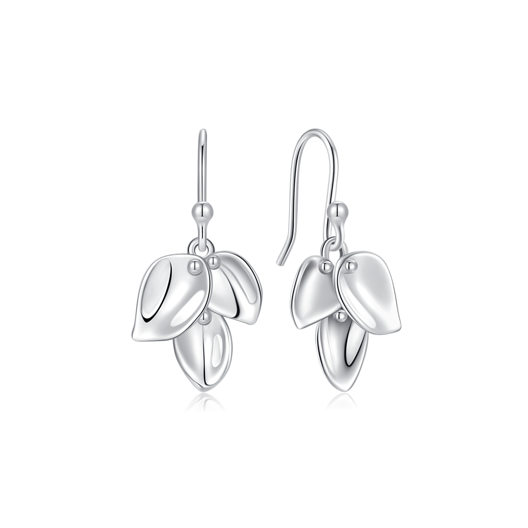 Sølv ørehænger rhodineret 3 blade med knopper på toppen.