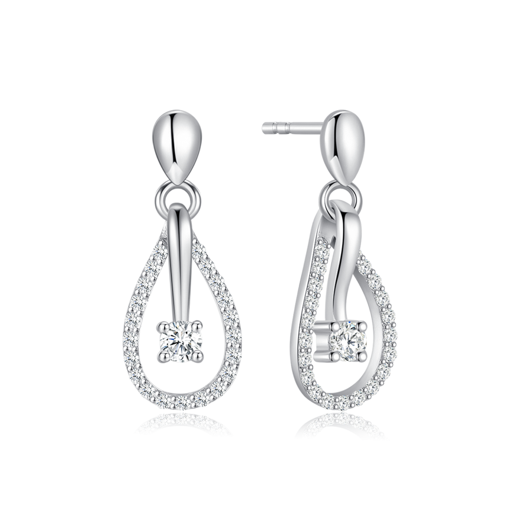 Sølv ørehænger rhodineret dråbe med en syntetisk cubic zirconia i midten og kanten.