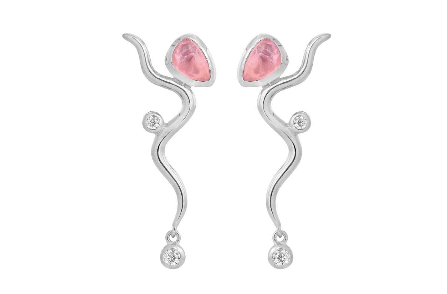 Pink Willow ørehængerne fremhæves af en iøjnefaldende 7 x 4,5 mm pink topas, der tilfører et sofistikeret udtryk til formelle outfits. Det bølgede design i sterlingsølv skaber en kunstnerisk flair, mens de klare zirkonia-sten tilføjer diskrete lysspil, der komplementerer forskellige hudtoner.