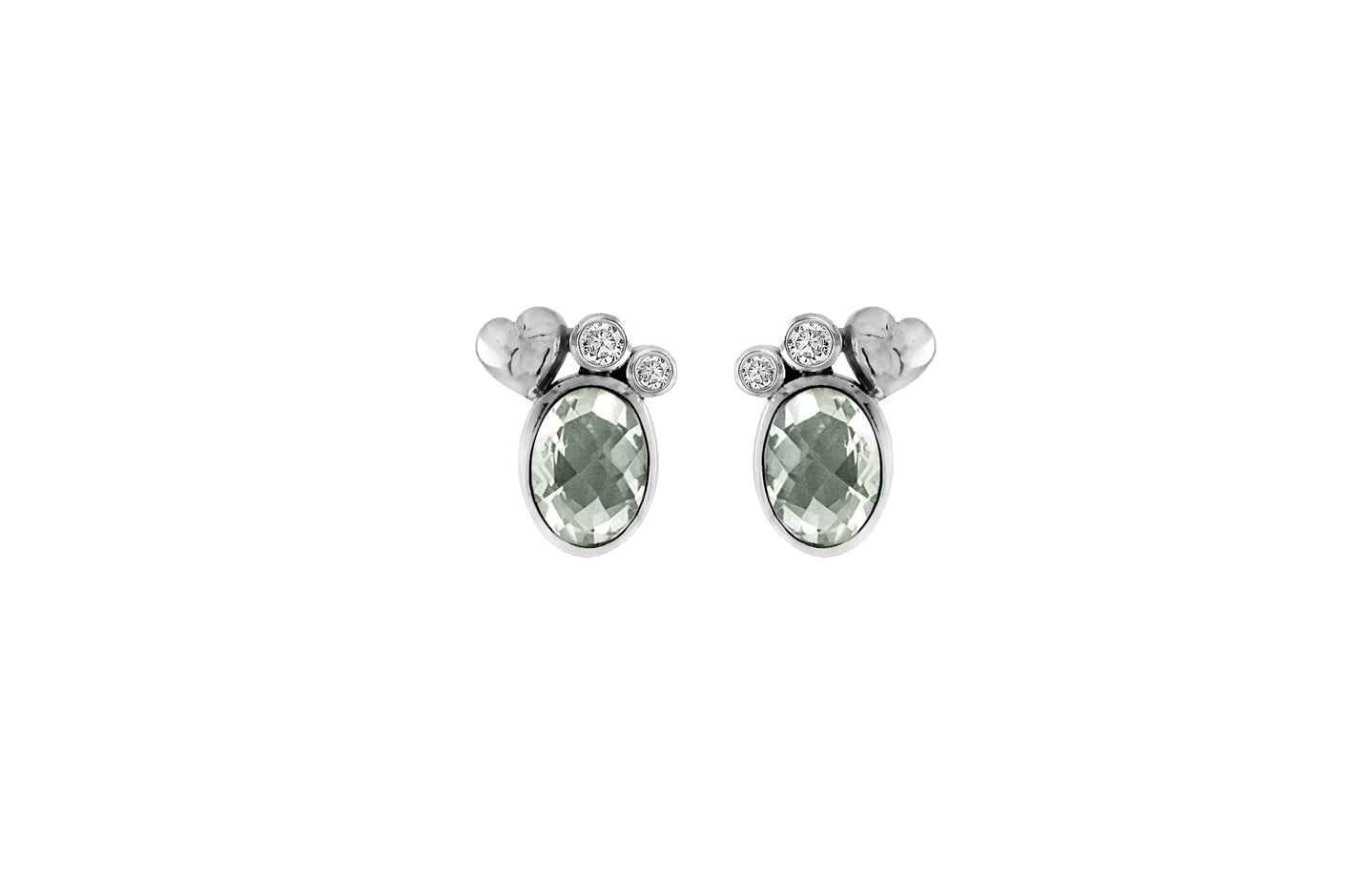 Disse raffinerede ørestik fås i sterlingsølv, forgyldt sterlingsølv eller 14 karat guld, så du kan matche din personlige stil. Den oval-facetterede prasiolitsten på 7x5 mm udgør et elegant midtpunkt, der fanger lyset med sit levende farvespil, mens to hvide topassten tilfører en subtil glans.