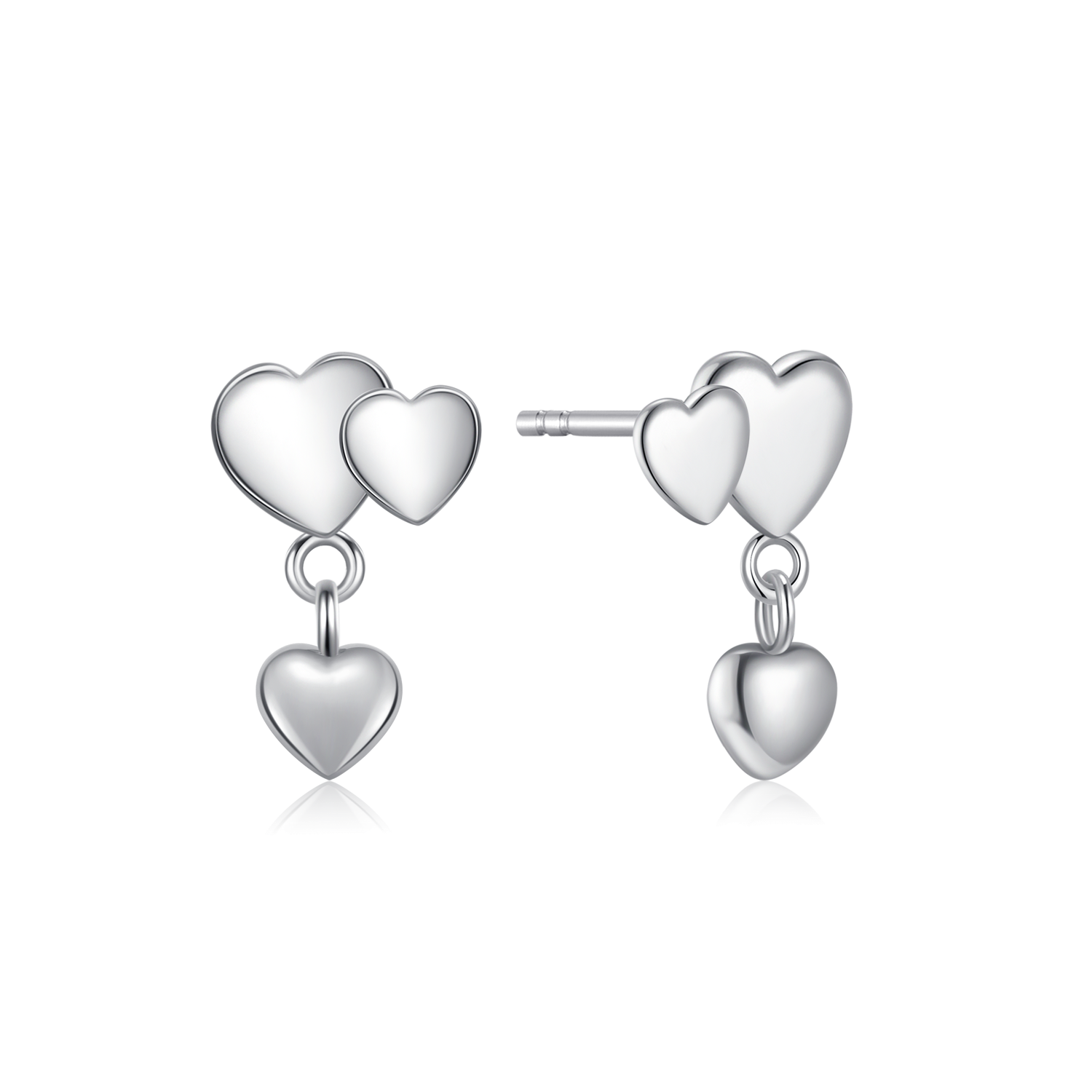 Sølv ørestikker rhodineret 3 forkellige hjerter, hvor den mindste hænger ned i bunden.