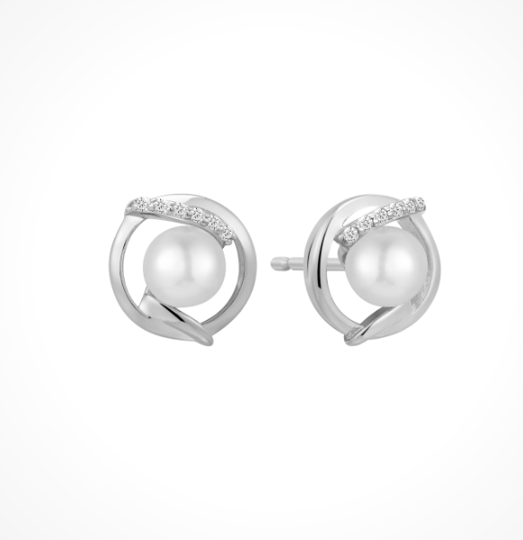 Sølv ørestikker rhodineret cirkel med ferskvandsperle og syntetiske cubic zirconia.