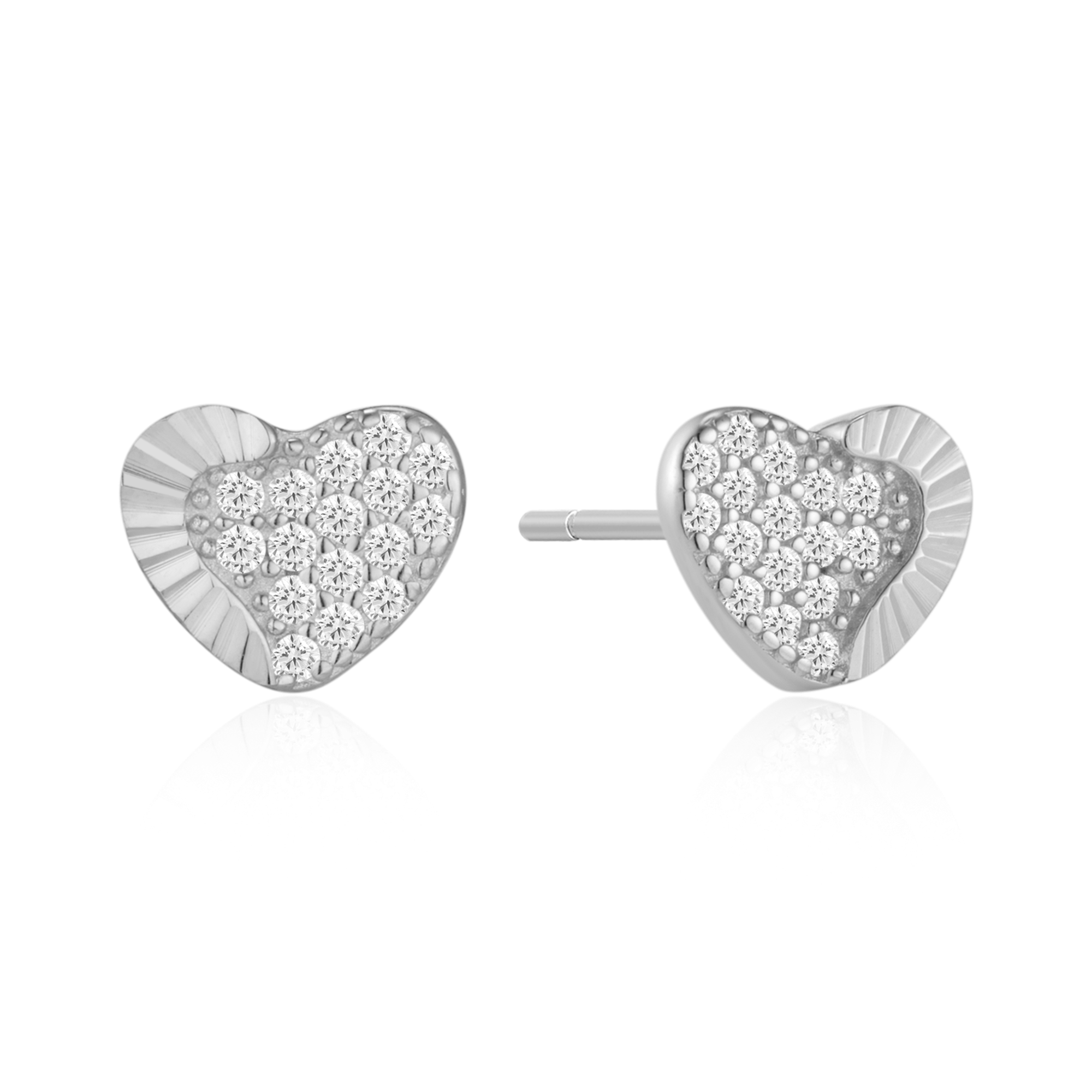 Sølv ørestikker rhodineret hjerte med syntetiske cubic zirconia.