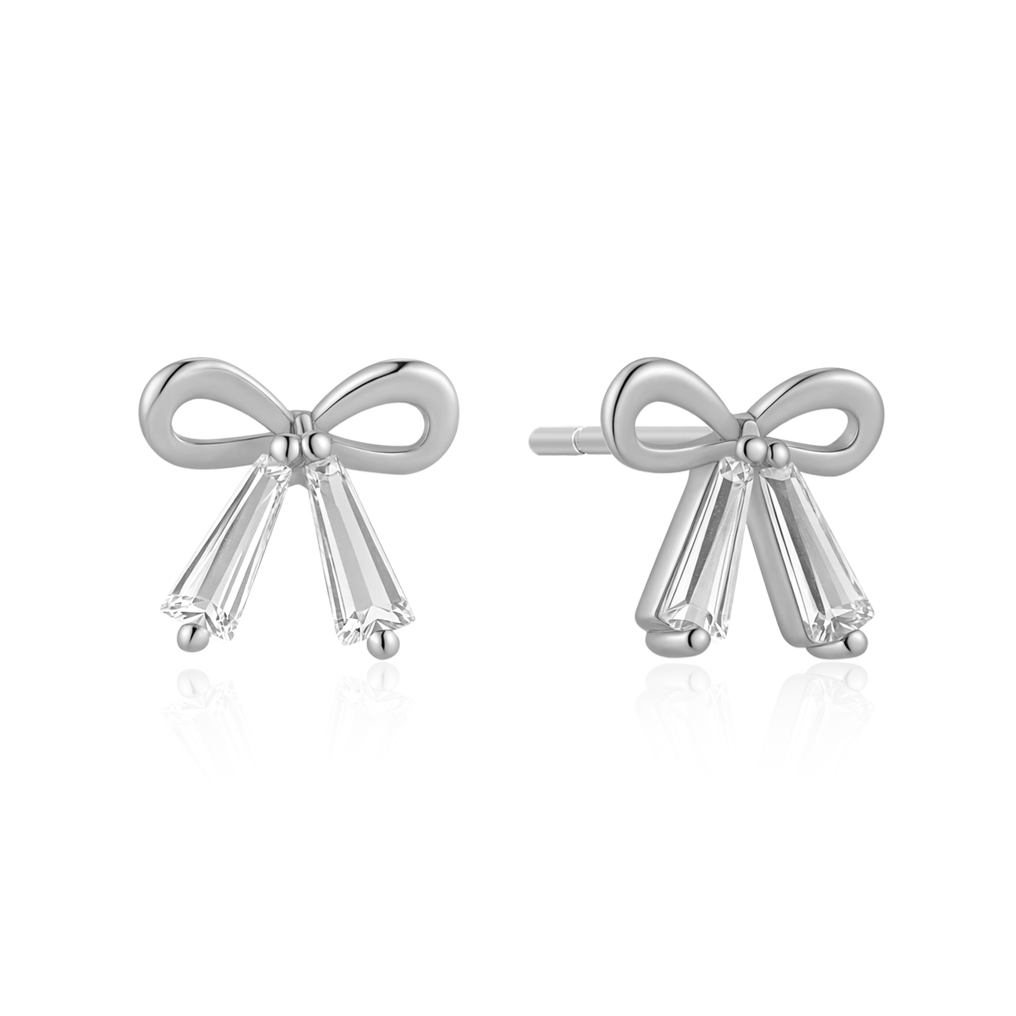 Sølv ørestikker rhodineret sløjfe med syntetiske cubic zirconia.