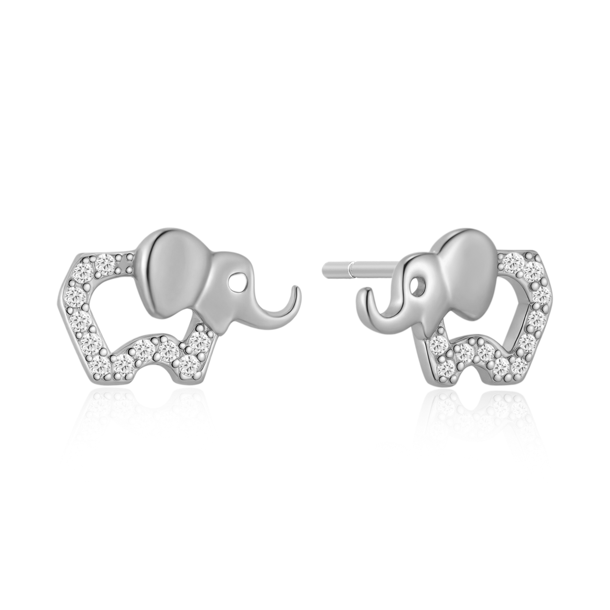 Sølv ørestikker rhodineret elefant med syntetiske cubic zirconia