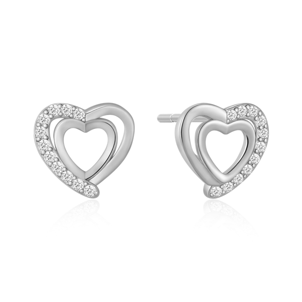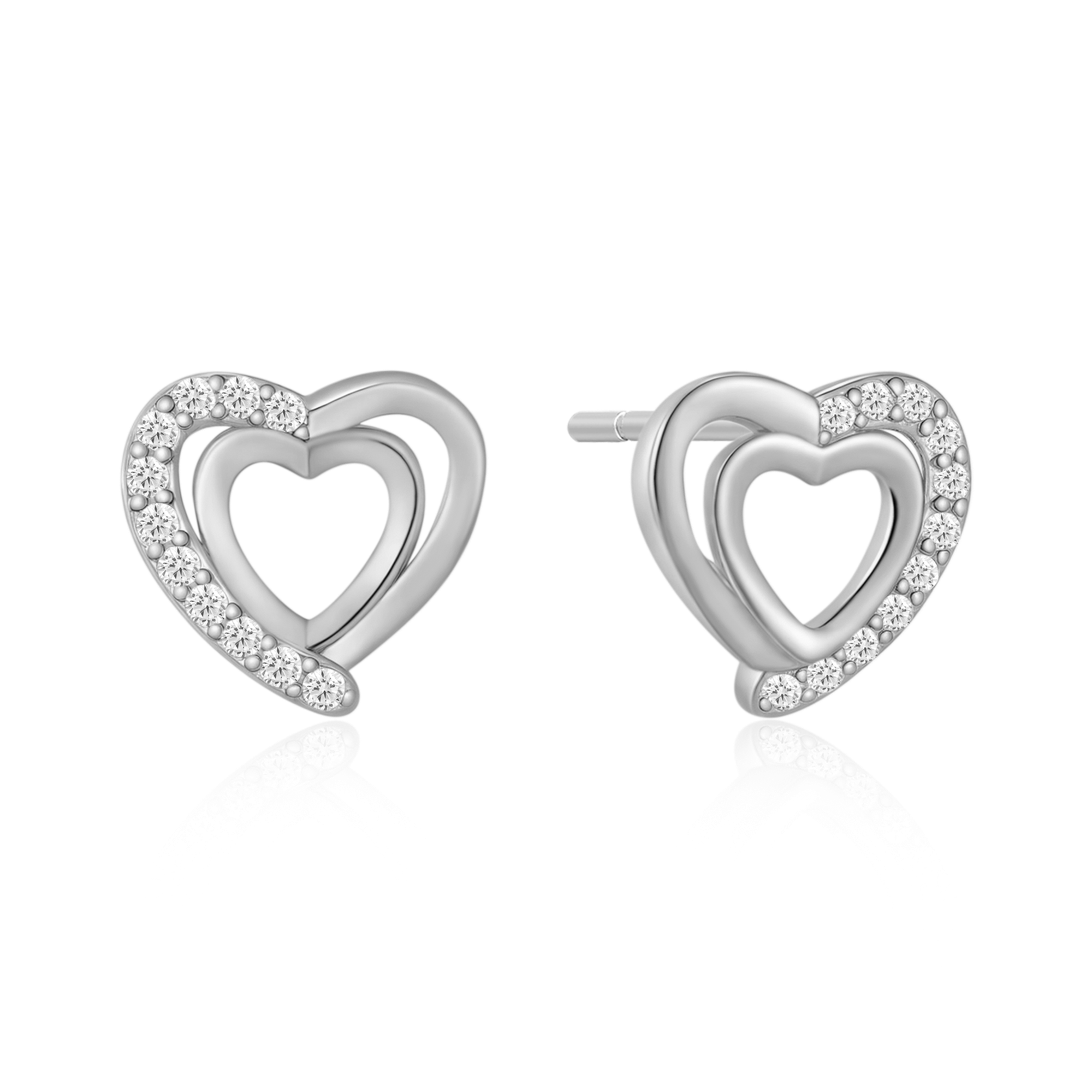 Sølv ørestikker rhodineret dobbelt hjerte med syntetiske cubic zirconia