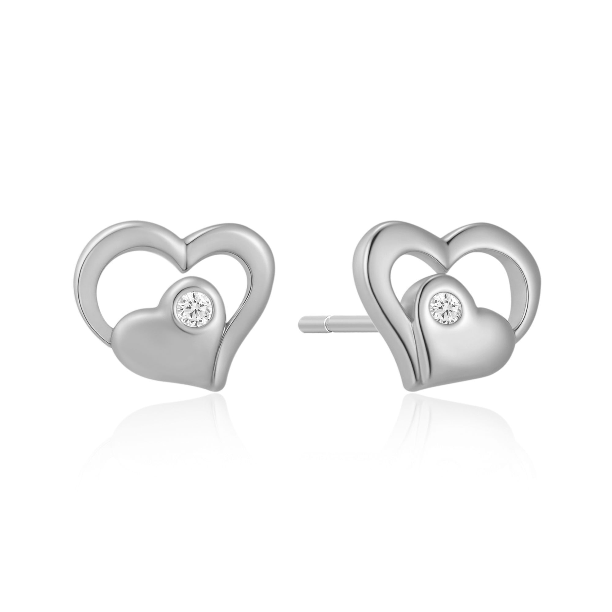 Sølv ørestikker rhodineret dobbelt hjerte med en syntetisk cubic zirconia