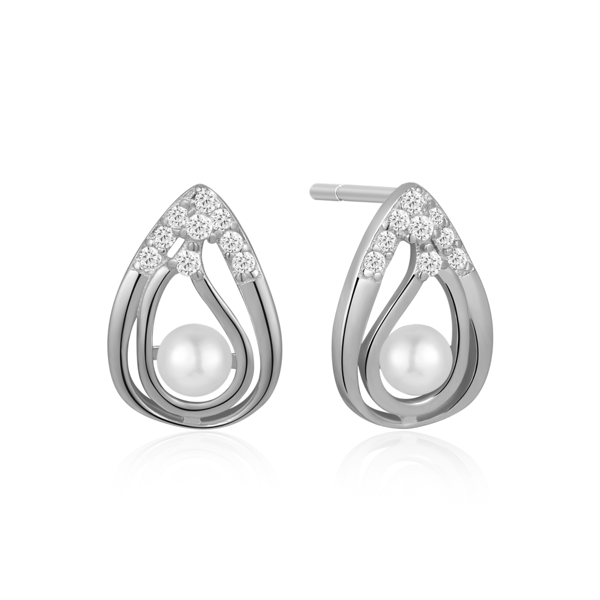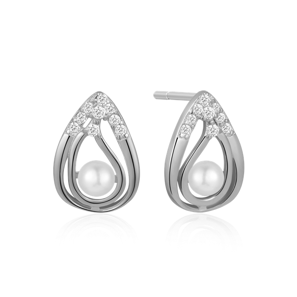 Sølv ørestikker rhodineret dobbelt dråbe med syntetiske cubic zirconia og ferskvandsperle.