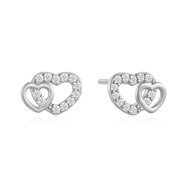 Sølv ørestikker rhodineret dobbelt hjerter med syntetiske cubic zirconia.