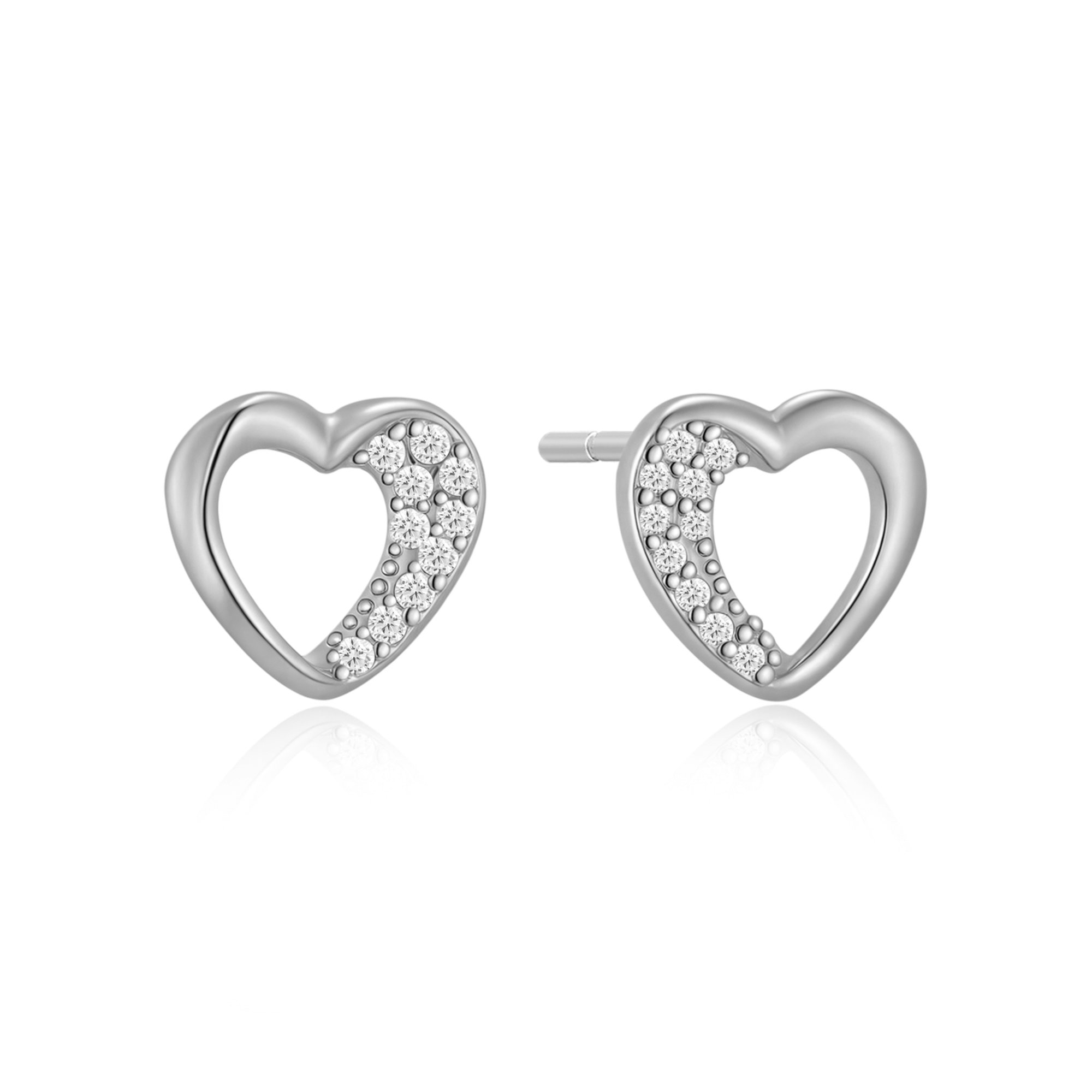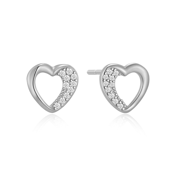 Sølv ørestikker rhodineret hjerte med syntetiske cubic zirconia