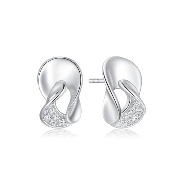 Sølv ørestikker rhodineret skæv blad med syntetiskecubic zirconia.