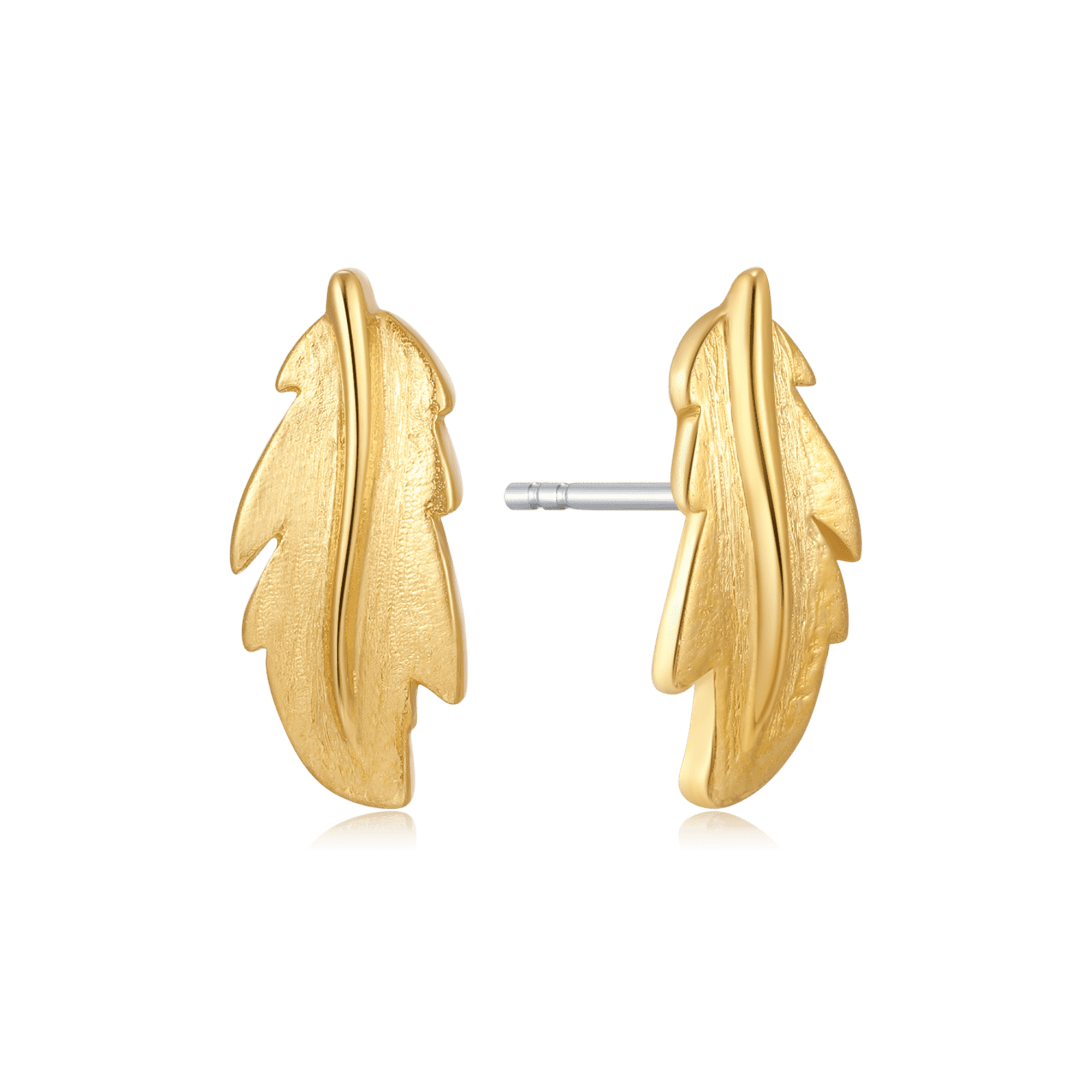 Sølv ørestikker forgyldt blad med rhodineret stik og lås.