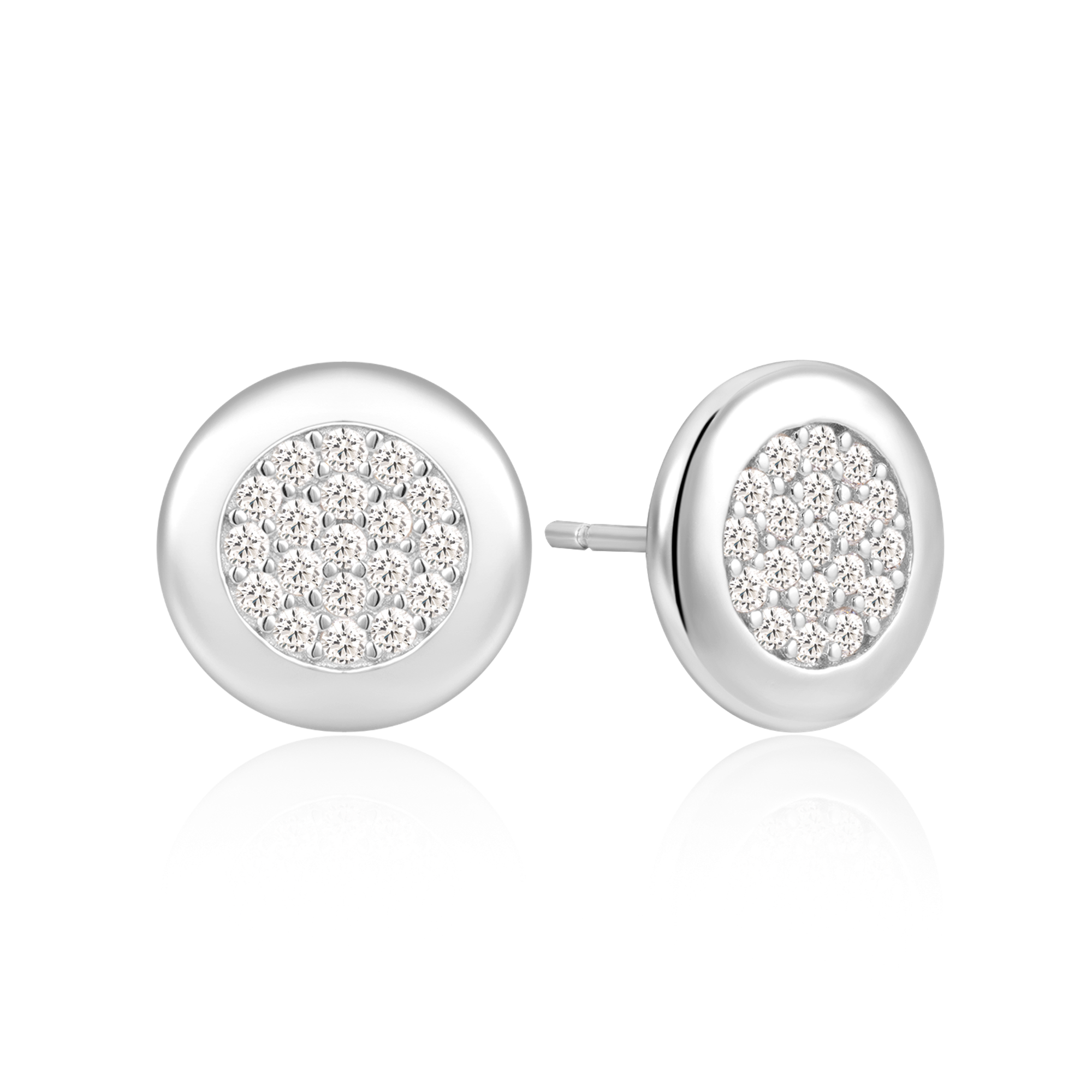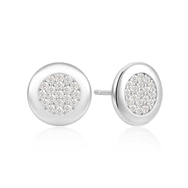 Sølv ørestikker rhodineret fyldt cirkel med syntetiske cubic zirconia.