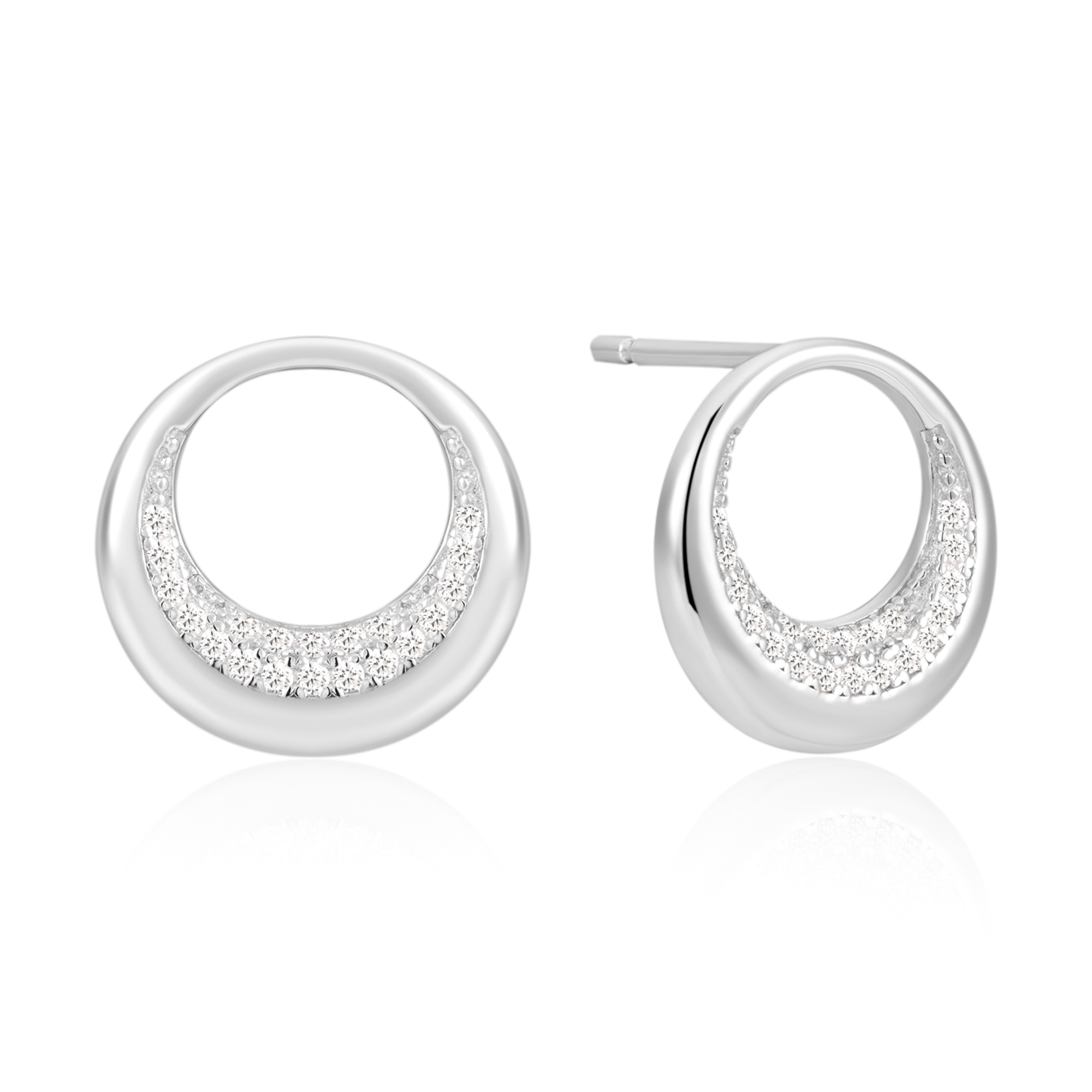 Sølv ørestikker rhodineret cirkel med syntetiske cubic zirconia.