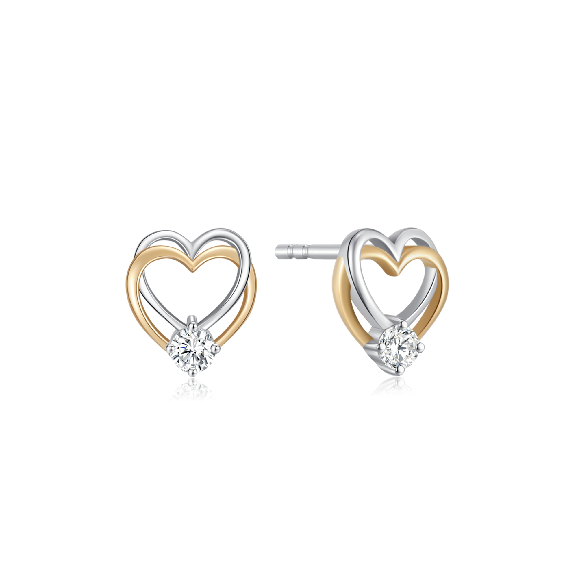 Sølv ørestikker rhodineret hjerte med forgyldt i den en hjerte med en syntetisk cubic zirconia.
