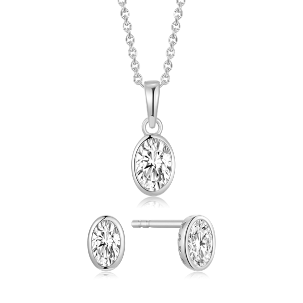 Sølv smykkesæt oval med en syntetisk cubic zirconia.