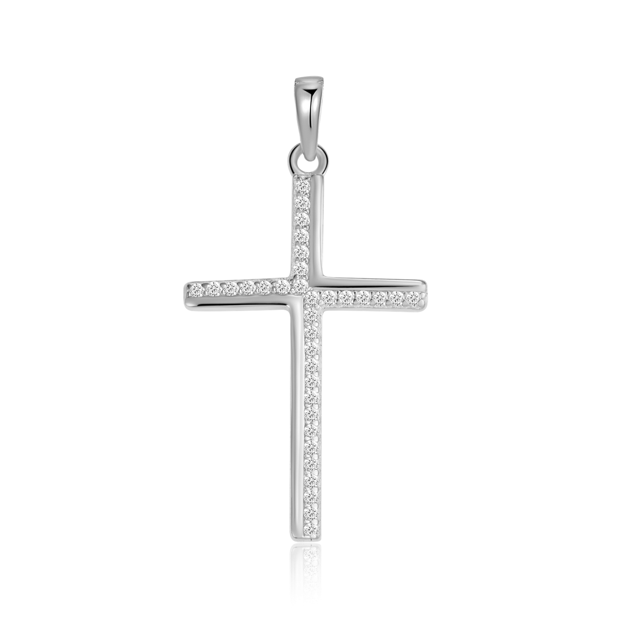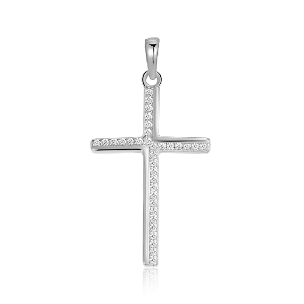 Sølv vedhæng rhodineret kors med syntetiske cubic zirconia.