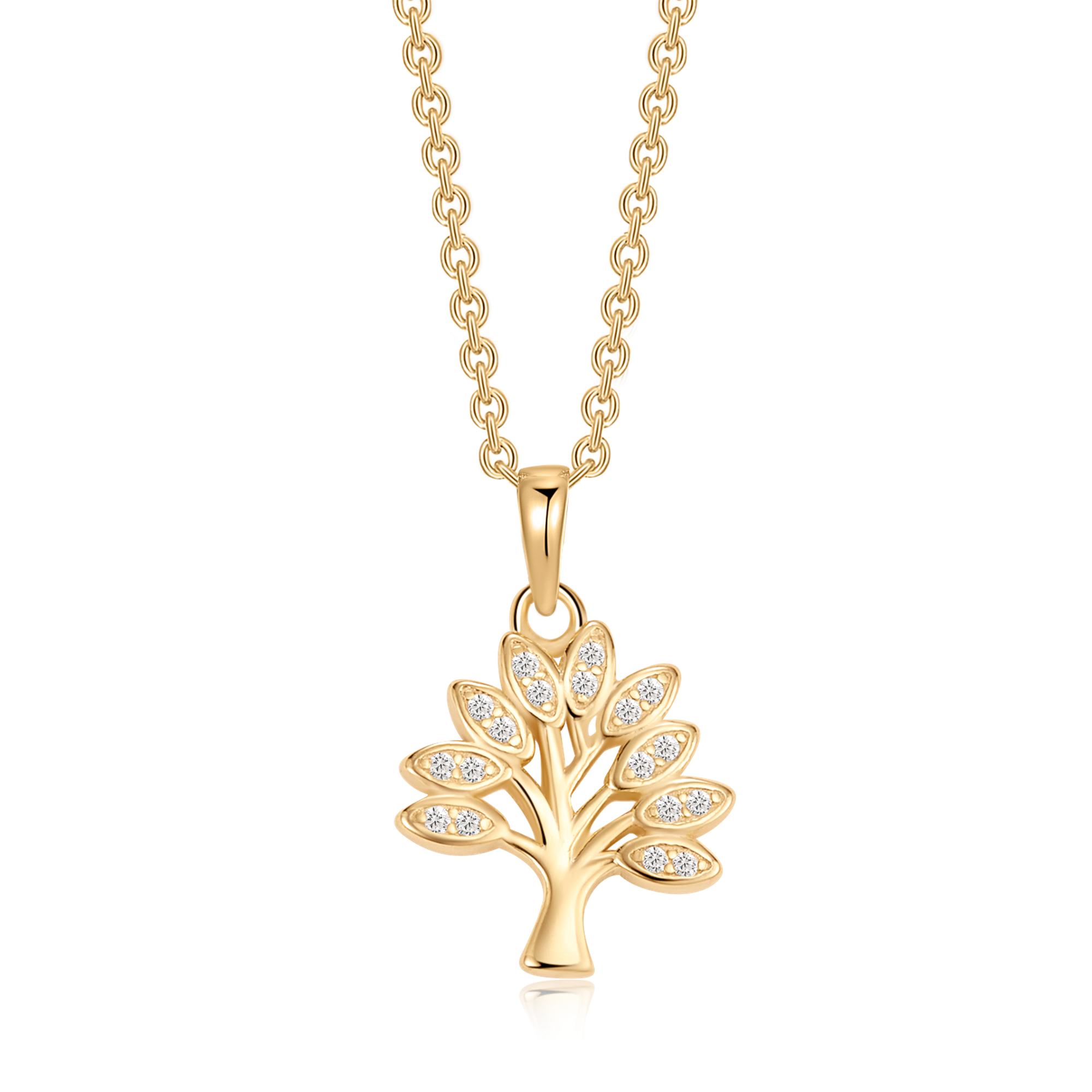 Sølvforgyldt halskæde livets træ med syntetiske cubic zirconia.
