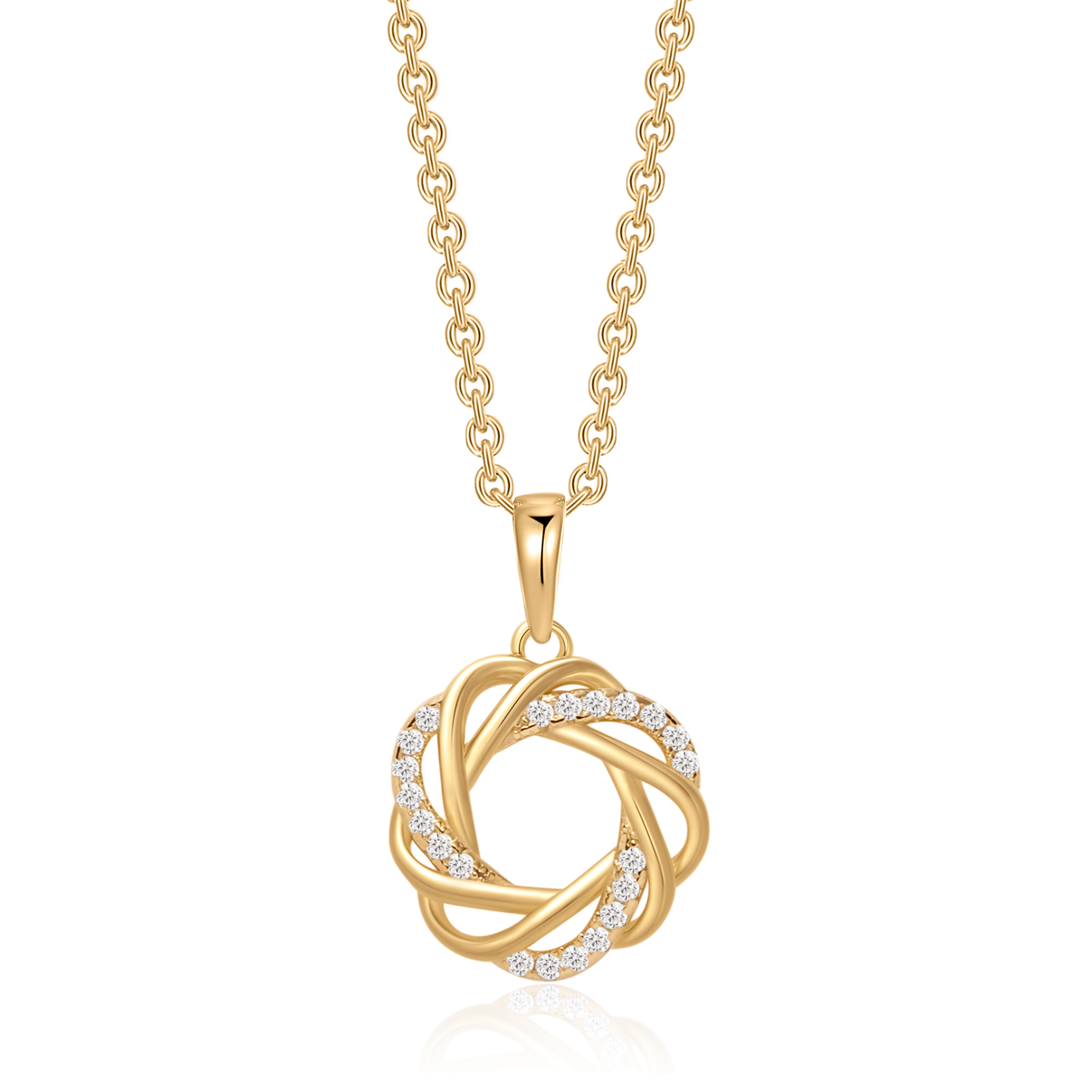 Sølvforgyldt halskæde flettet cirkel med syntetiske cubic zirconia.