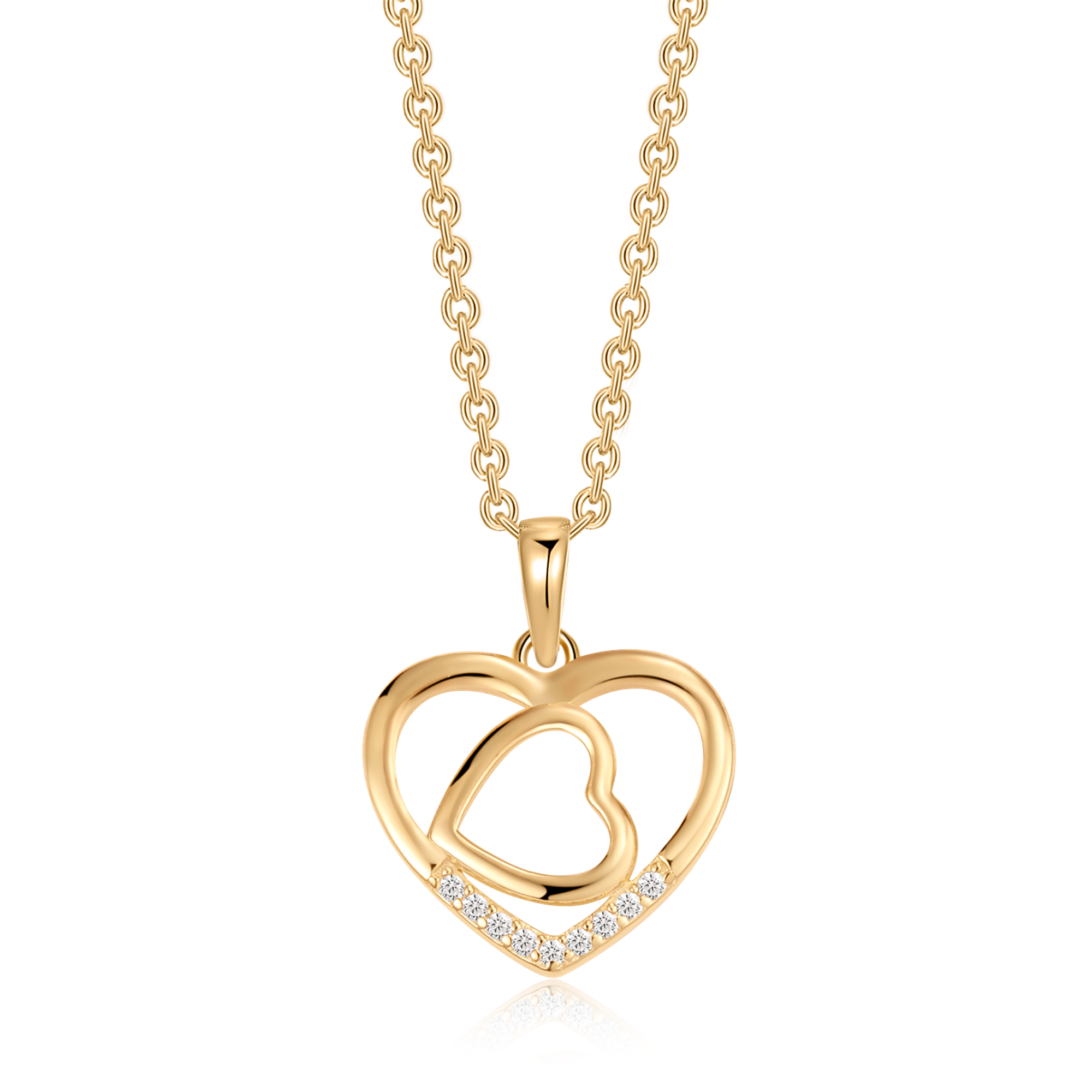 Sølvforgyldt halskæde dobbelt hjerte med syntetiske cubic zirconia.