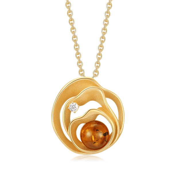 Sølvforgyldt halskæde blomster med rav og syntetiske cubic zirconia.