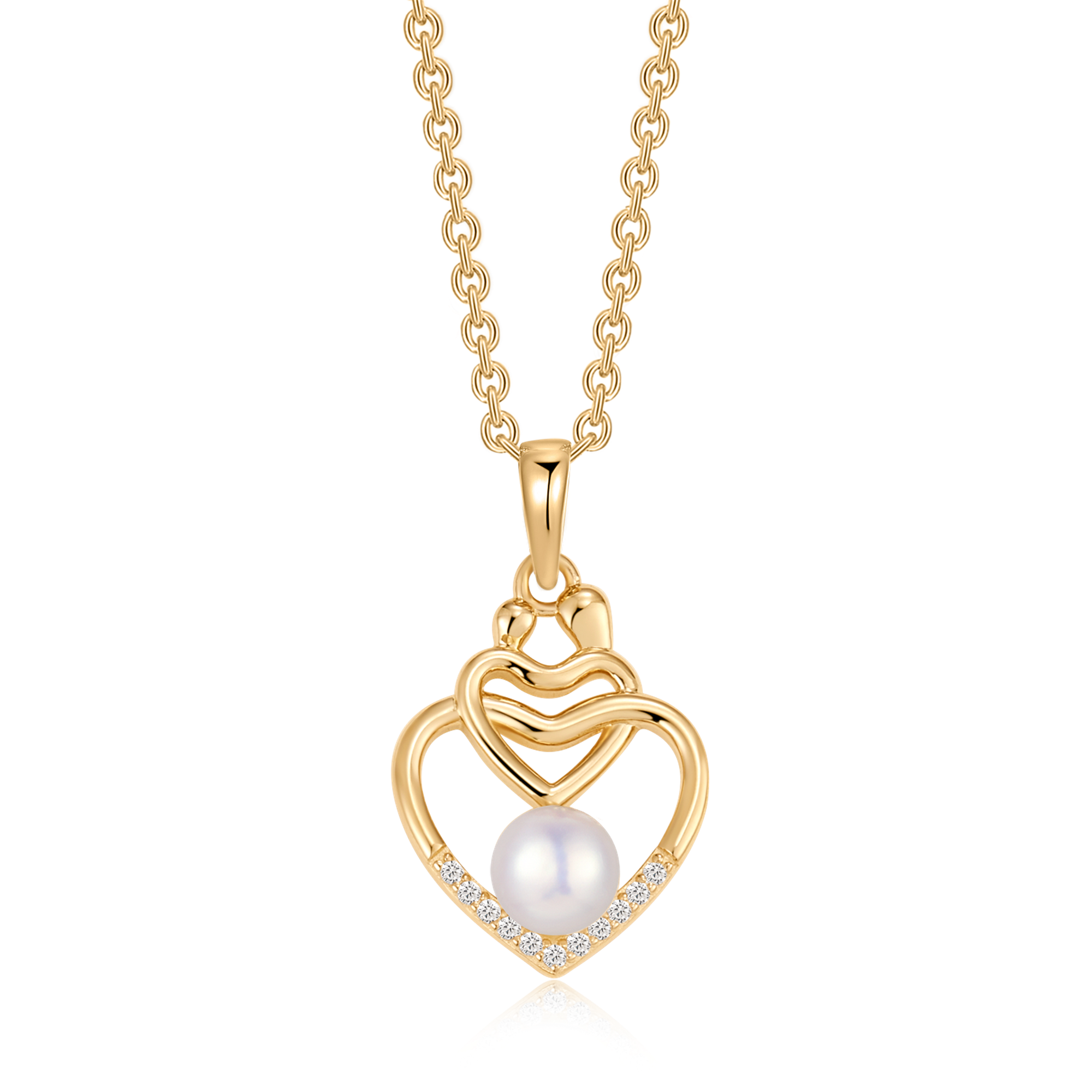• Dobbelt hjerte-design med ferskvandsperle og zirconia