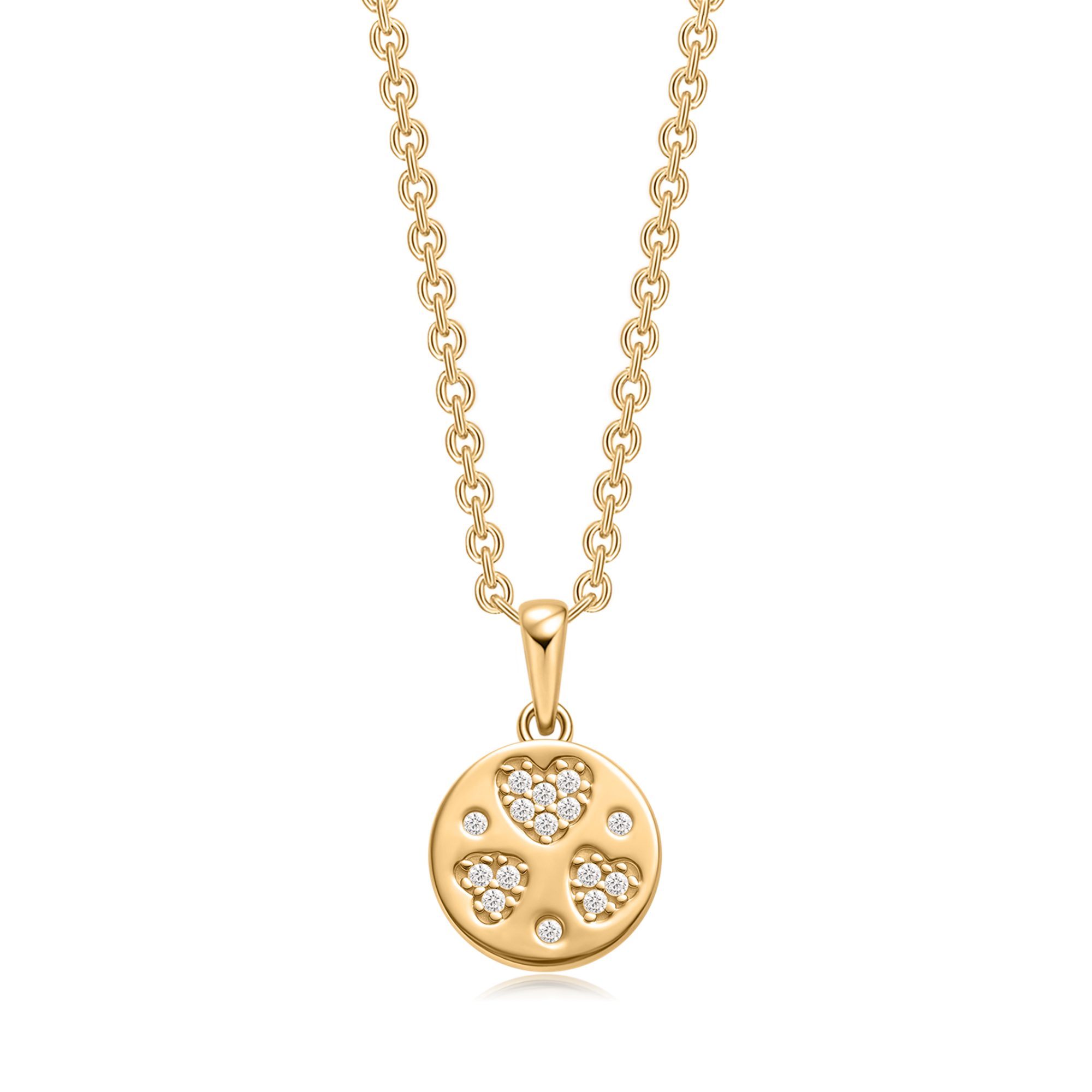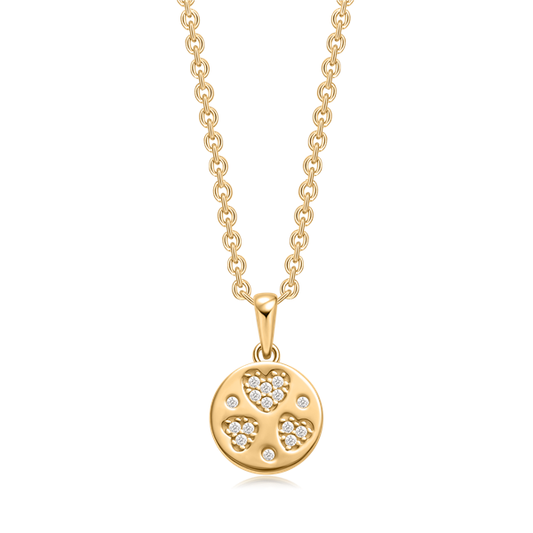 Sølvforgyldt halskæde fyldt plade med 3 hjerter og syntetiske cubic zirconia.