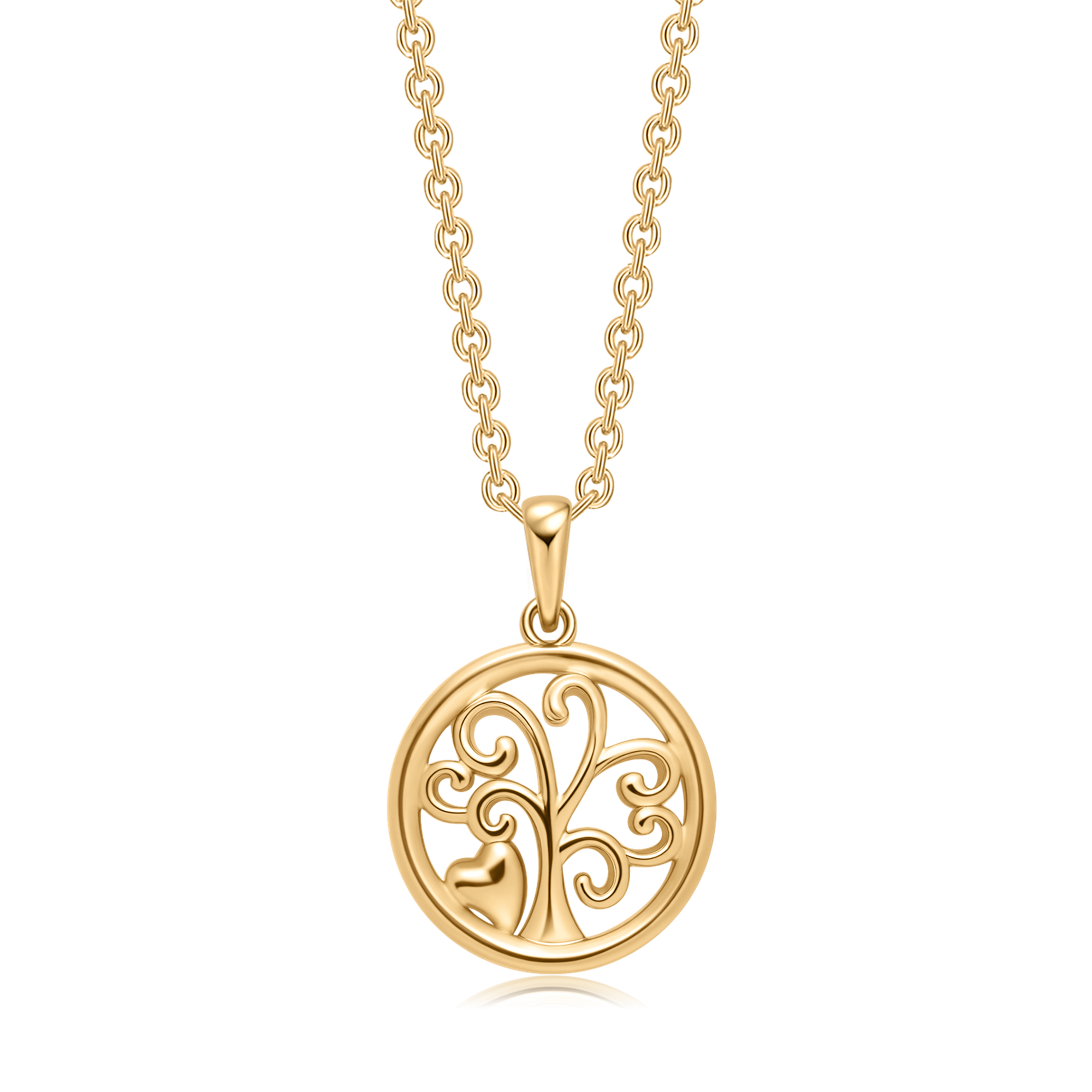 Sølvforgyldt halskæde cirkel med livets træ og hjerte.