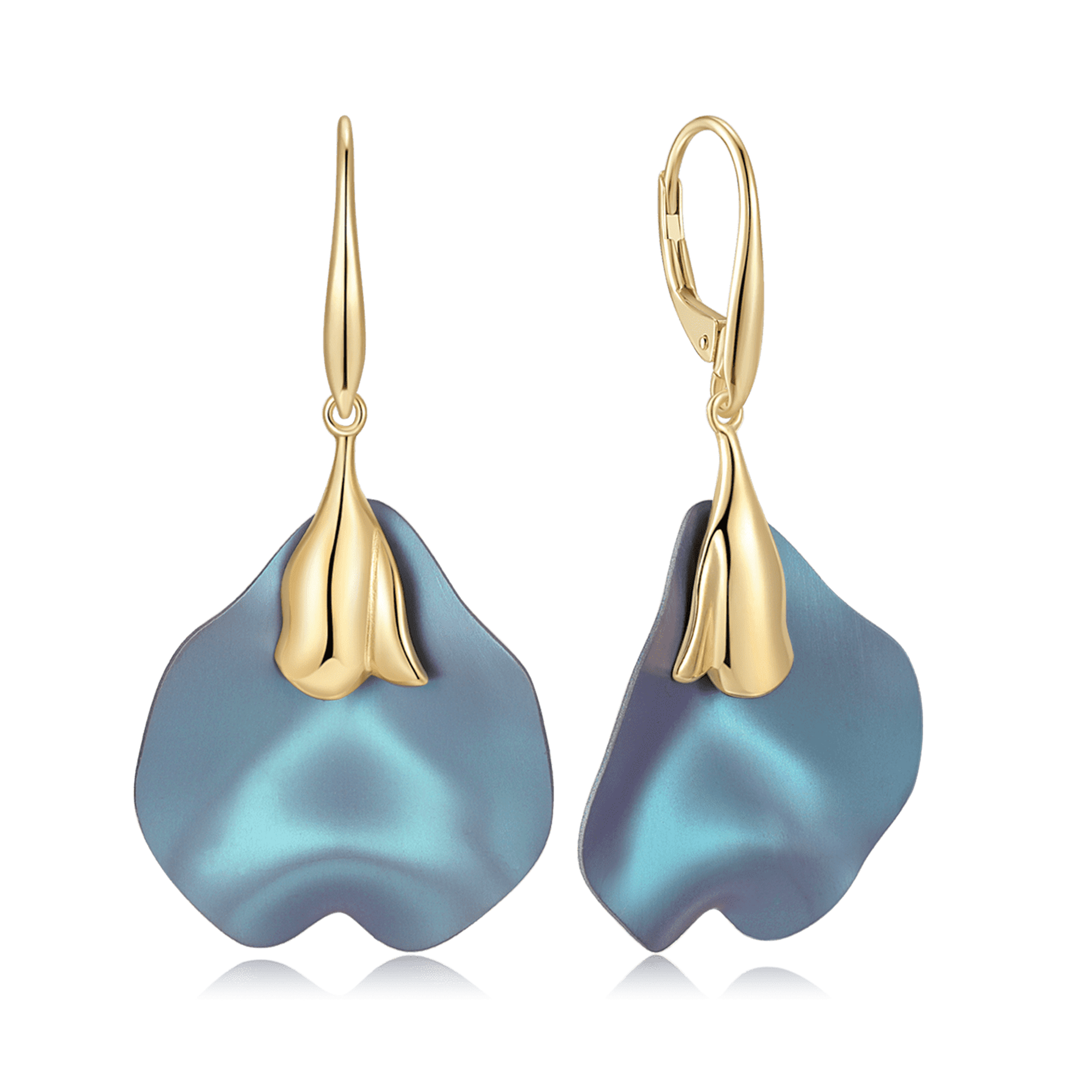 Sølvforgyldt ørehængere blomst med blå jeans titanium og tysk lås.