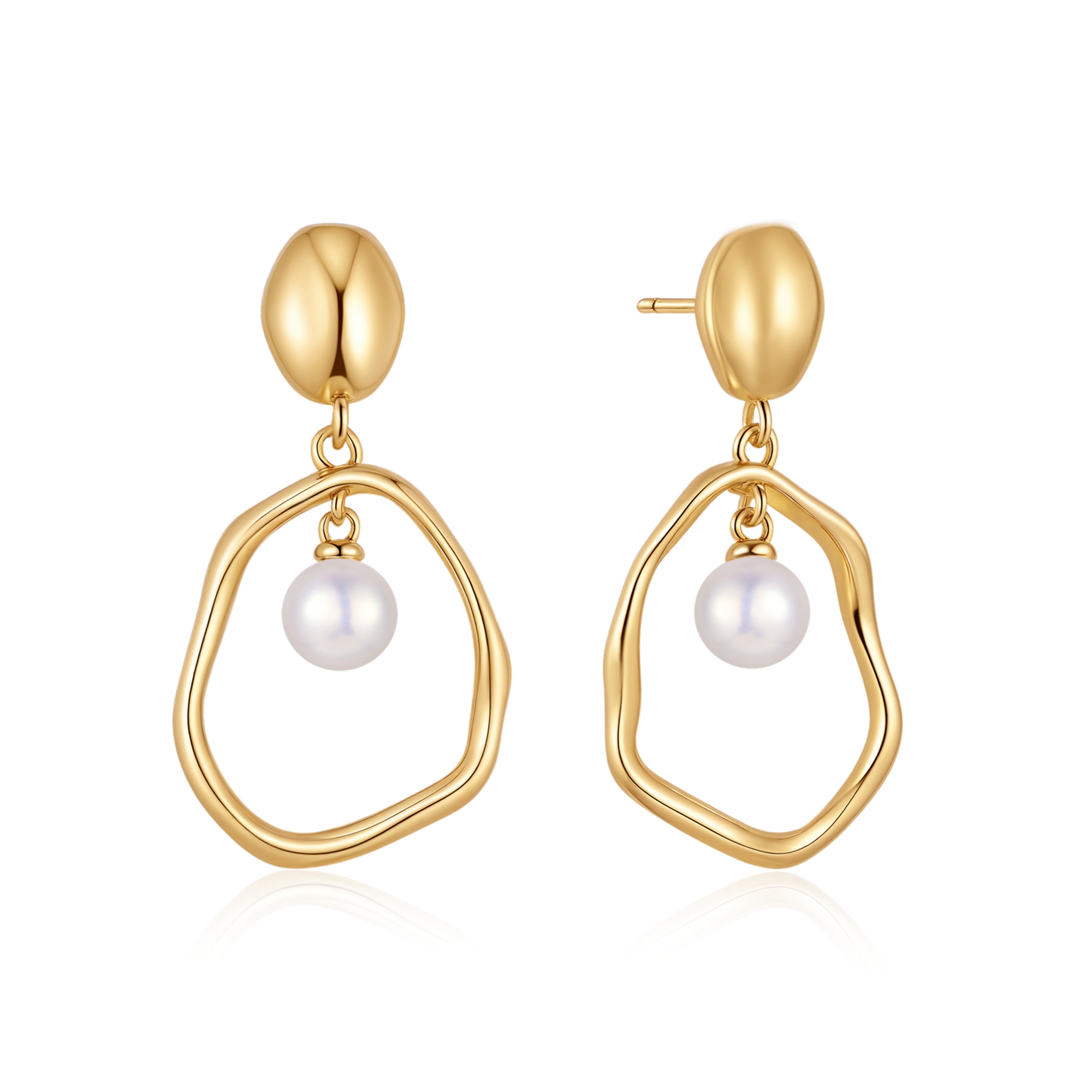 Fra Støvring Design kommer disse ørehængere med en kunstnerisk, bølget form, der omkranser en smuk ferskvandsperle. Den gyldne finish giver smykket et eksklusivt udtryk, mens den organiske form skaber et moderne og sofistikeret design, der er ideelt til bryllupper eller gallamiddage.